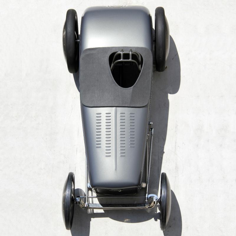 Il y a bien longtemps que les autos à pédales ne sont plus réservées aux enfants, mais bien plus aux collectionneurs qui retrouvent les doux plaisirs de leurs tendres années, lorsque bras tendus sur le volant, ils lançaient des défis muets à leurs copains, rentrant les épaules et avançant le menton pour se dessiner un fort improbable aérodynamisme, alors que le manège lâchait les monstres.