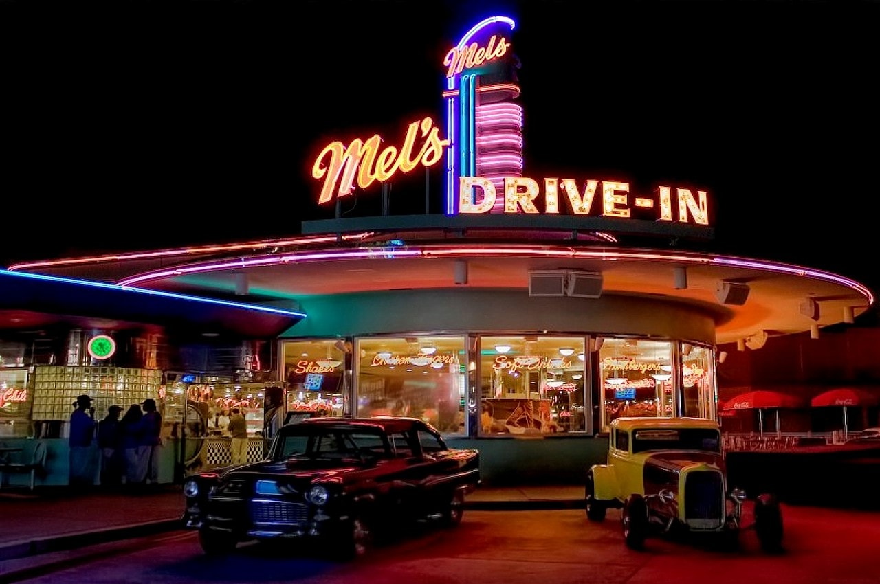 De son vrai temps des années ’50/’60, il s’affichait dans des réunions de Greaser’s, les samedis soir sur le parking de divers fast-food’s, bien avant l’existence des McDonald’s… et ça se terminait en courses de Hot-Rod’s, façon dragster’s : les filles en poom-poom short’s et corset en vichy, les garçons en blouson noir et peigne dans la poche.