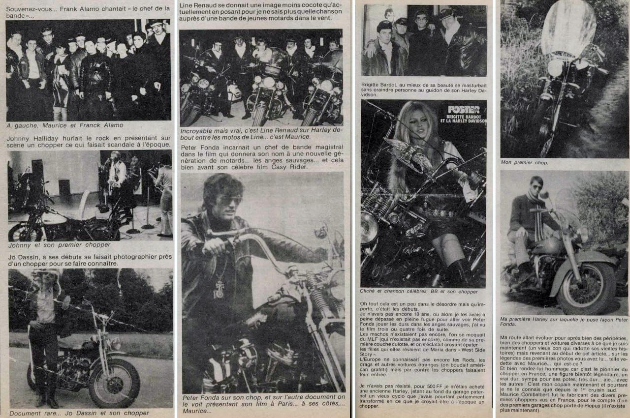 – L’Harley-Davidson qui figure dans le clip vidéo de Brigitte Bardot. Et bien c’était lui. Présenté souvent comme le précurseur du chop’ en France, Maurice Combalbert est en tout cas celui qui a su le premier le médiatiser dans les années ’60. Personnage fort en gueule, extrémiste dans ses propos, il n’avait pas que des amis, mais tous les anciens parlent encore de lui avec respect.