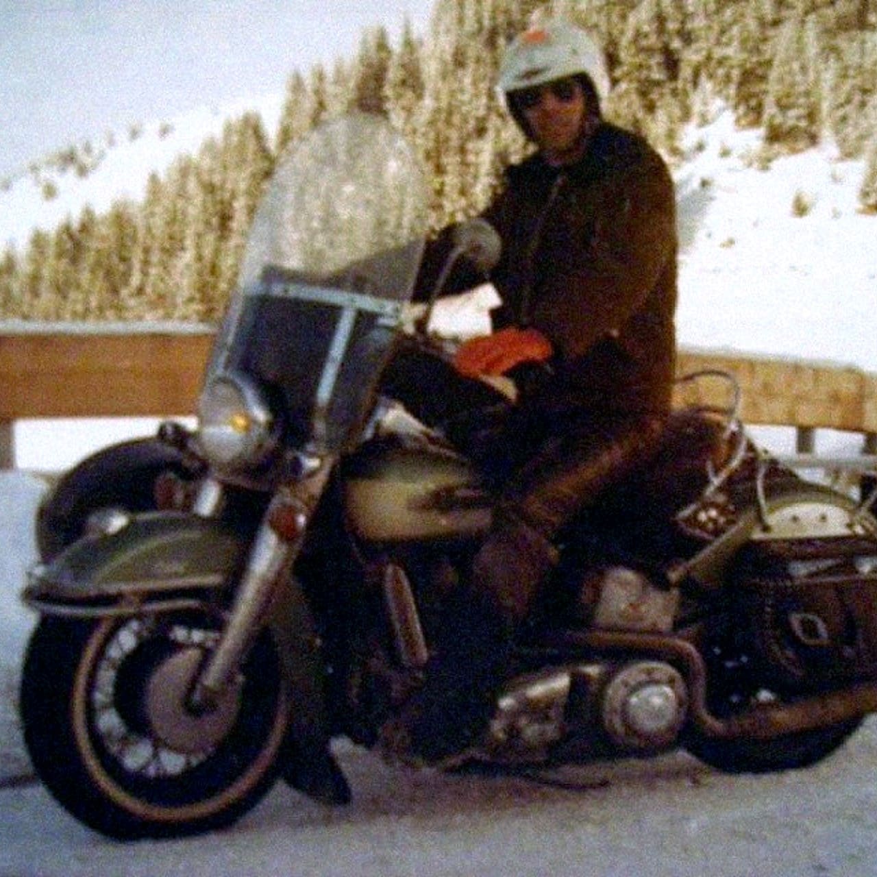 – Ha ! Ma période Hydra-Glide… Me voici sur l’engin de toutes mes convoitises, une 1200 Duo-Glide magnifique, enfin un Panhead comme mes potes, mes modèles. Mon pote Riton qui m’avait à la bonne, m’a vendu sa moto. Ah ! Putain, ma moto, celle de mon pote Riton. J’avais la tête qui enflait, j’avais franchi un cap ! j’ai connu une fille à cette période qui m’a fait obtenir des papiers, j’étais en règle avec la loi. A partir de cette période j’ai sillonné toute l’Europe en Harley. Que du bonheur vraiment. Avec mes potes, certains de vrais bikers, nous avions créé un club : “Les Coyotes”. Là c’était très dur pour les tièdes, on devait faire le maximum de sorties à l’étranger, tous les rallyes possible devaient être faits ! On a becqueté du km croyez-moi et par tous les temps. Celui qui ne venait pas devait avoir un bon motif, sinon il était viré du groupe. Je vous le redit, c’était dur, mais chouette, on pouvait compter sur n’importe lequel d’entre nous en cas de besoin financier ou autre ! C’est une époque que je regrette beaucoup, il n’y avait pas de tarlouzes dans le groupe et gare à celui qui nous traitait de “Mickey” ou considérait nos motos “d’engins agricoles”…