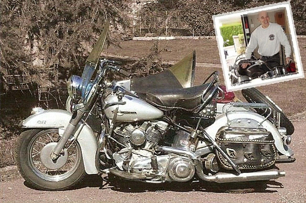 – Ma femme, hyper intelligente, ne m’a jamais demandé de choisir, comme certaines l’ont fait a des potes : “ta moto ou moi, tu choisis”… Avant de me marier j’avais prévenu ma femme et lui avais dit : “tu sais, je t’aime beaucoup, mais j’ai connu l’Harley avant de te connaitre, alors ne me demande jamais de choisir”. Depuis j’ai eu 15 Harley’s. J’ai bientot le million de km, ma femme a son Sporster 1200 et moi mon Electra-Glide. Ma vie est plus sereine, je roule de temps en temps avec ma femme , tour de Corse etc… C’est une autre vie et l’âge étant là, faut être plus raisonnable et ne pas péter plus haut qu’on a son cul, sinon on finit par avoir mauvaise haleine…, donc mes sorties en Harley sont plus limitées, surtout depuis mon accident : fracture du bassin, vertèbres lombaires brisées, poignet gauche cassé…, donc plus de force au poignet gauche, aussi j’ai scotché une clé plate à ma manette d’embrayage pour la rallonger, ce qui me donne plus de force pour débrayer, donc je peux encore rouler. Voilà un peu de ma vie Harley et si j’ai été un peu barbant, j’en suis désolé.