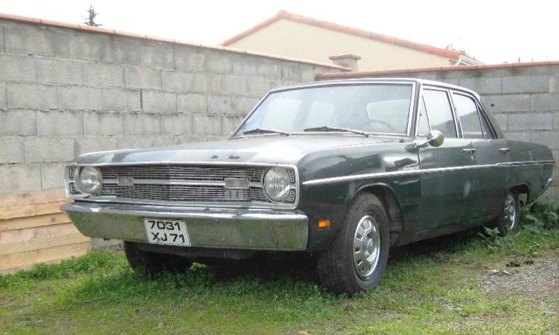 Salut Beaucoup de mails pour demander les photos de la DODGE. Donc voici les photos de la Dodge Dart de 1968 (V8) Carbu neuf. Prix 3200 EUros. Pour tout renseignement complémentaire contacter PHIL au 06 xx xx xx xx A+
