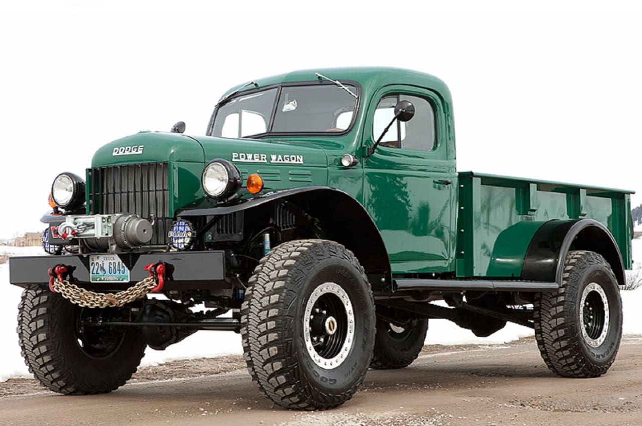 Comme j’adore ces gros 4X4 américains, je ne résiste pas au bonheur de vous faire partager mon plaisir à propos d’un gros Pick-Up US des années ’70 que l’on refait là-bas dans le Wyoming chez Jackson, mais à l’état neuf : le Legacy Power Wagon, dérivé du Dodge AWD Truck : quatre freins à disques, airco, direction assistée, treuil, plus deux tonnes de charge, amortisseurs Bilstein, blocage de différentiel avant et arrière avec au choix un V8 essence Magnum de 425 chevaux ou bien un 3,9 l Cummings turbo diesel avec plus de 500 Nm de couple, boîte mécanique 5 vitesses ou automatique 4 rapports au choix !