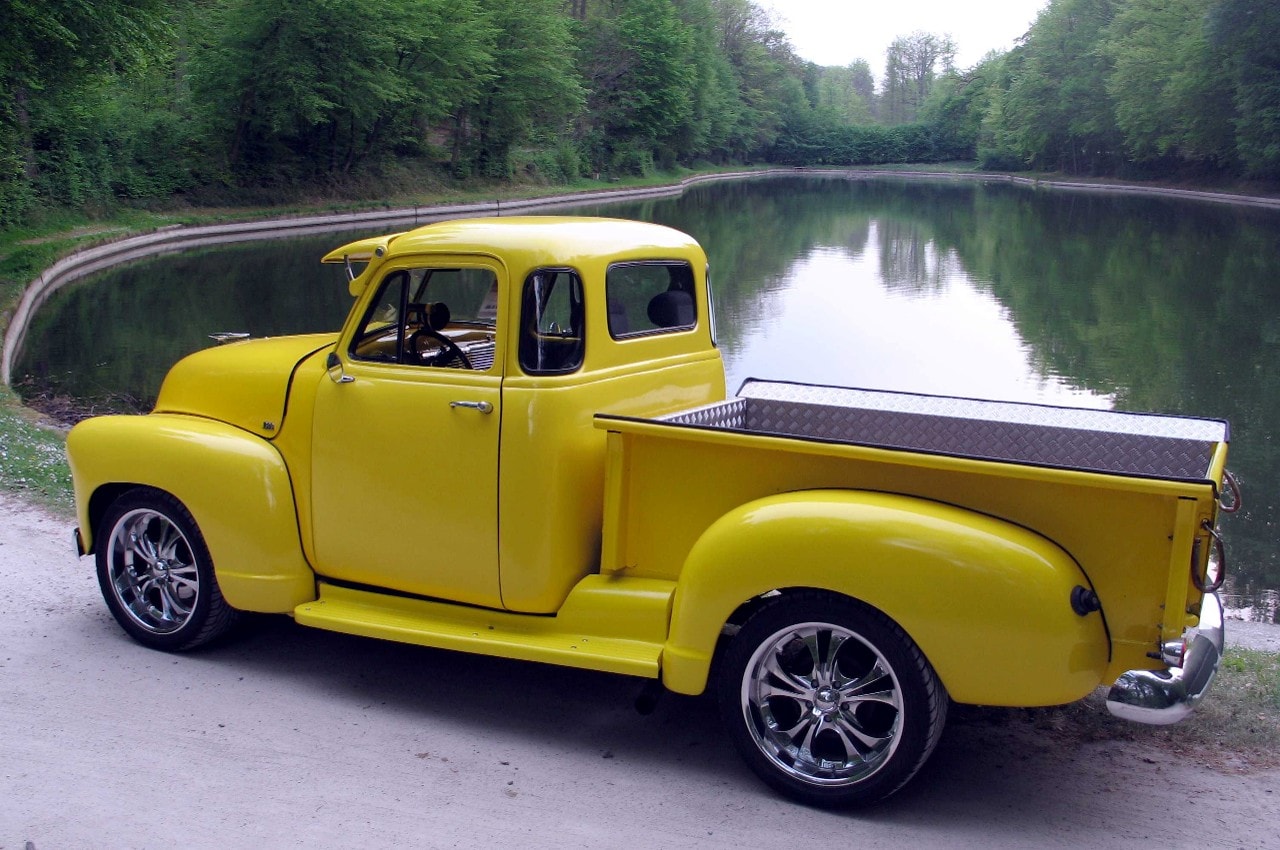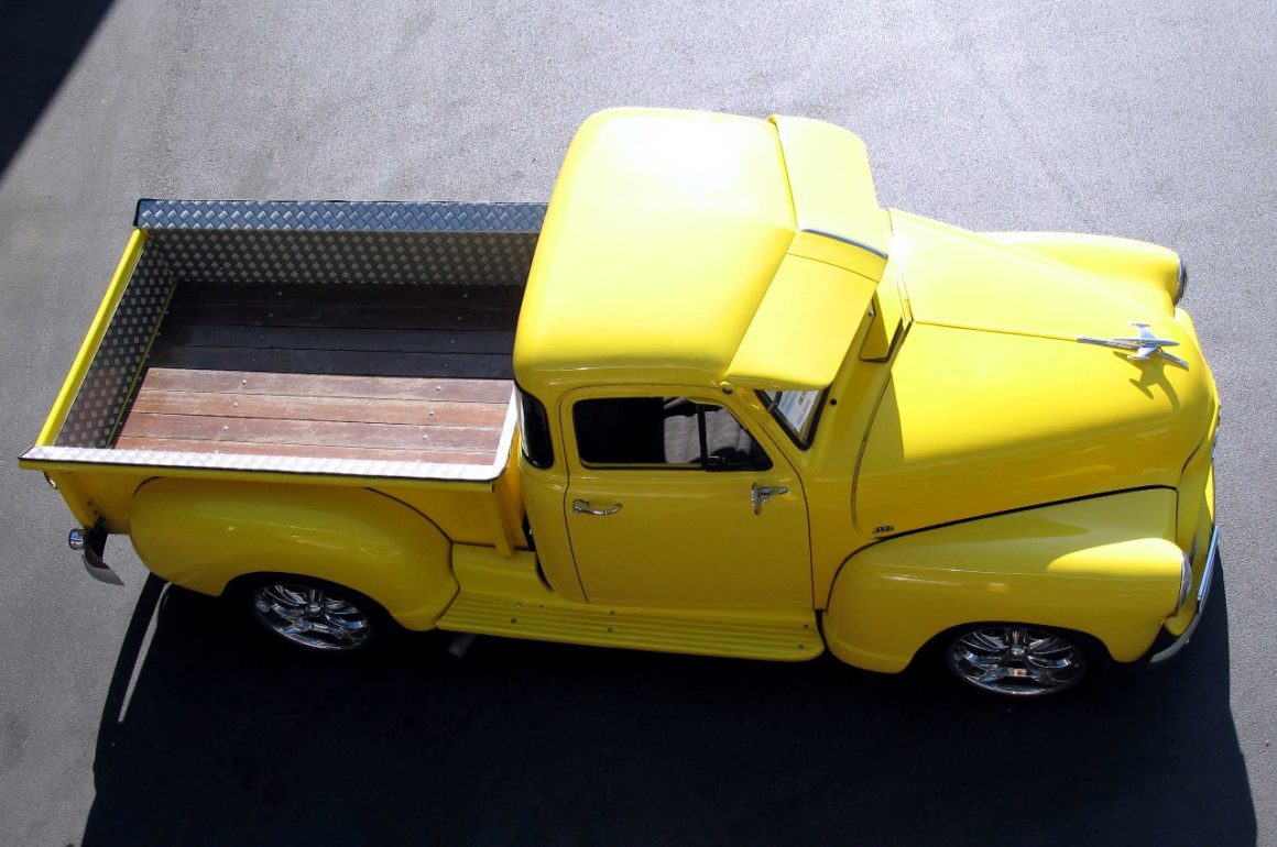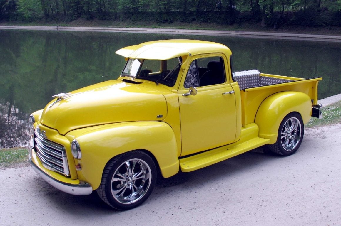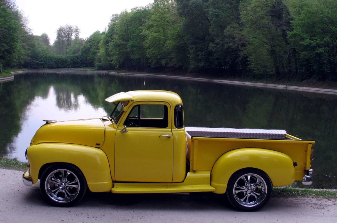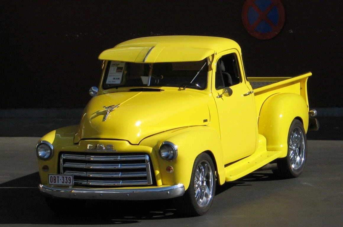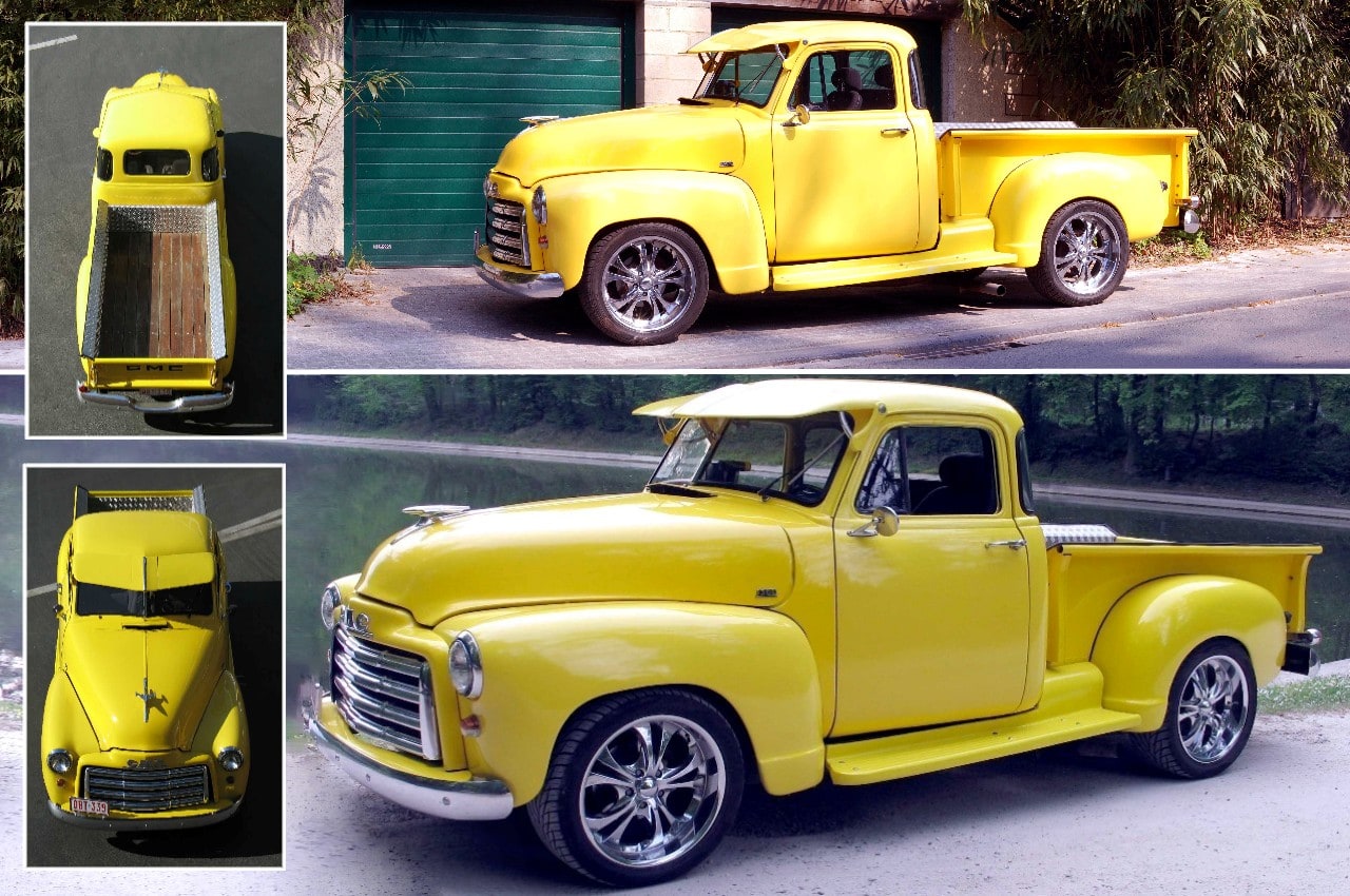 Le Pick-Up GMC/Chevy qui illustre la majorité (1er partie) de cet article, date de 1952… ensuite vous aurez droit à un Chevy SSR de même couleur jaune.
