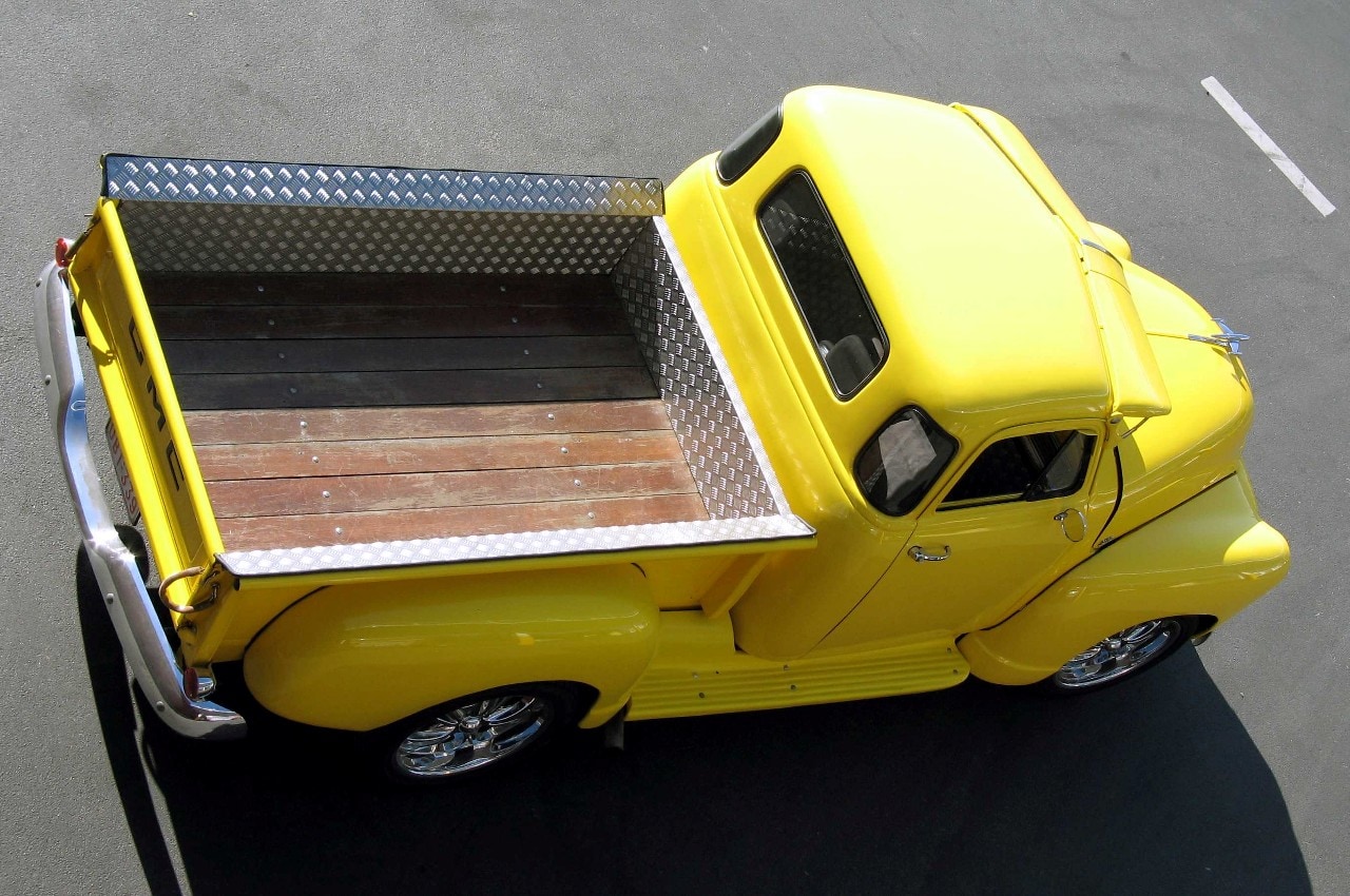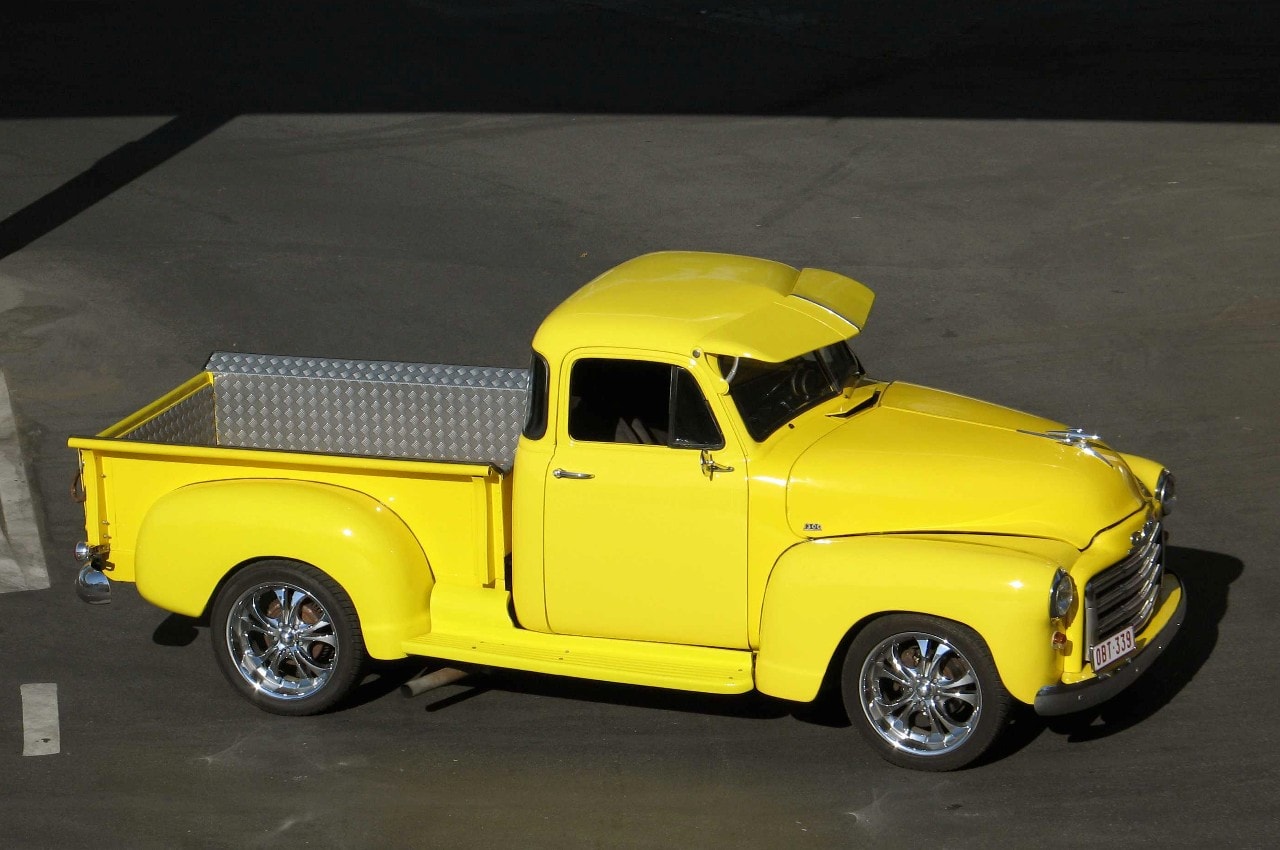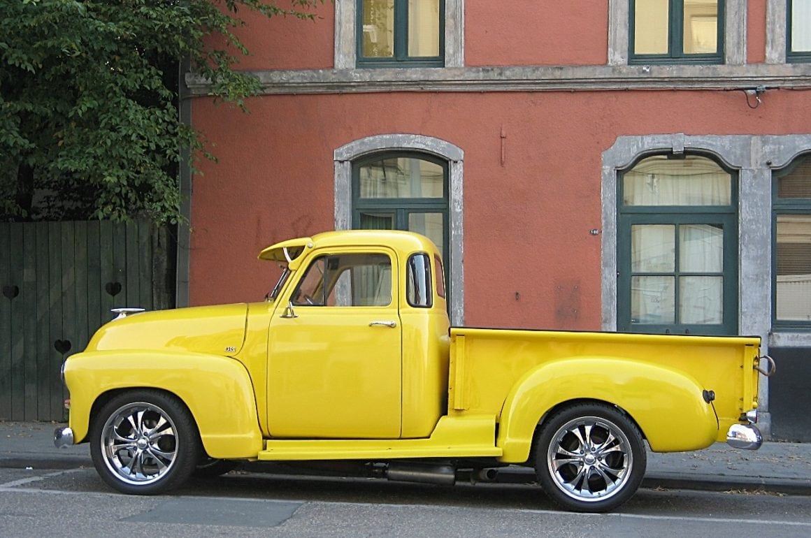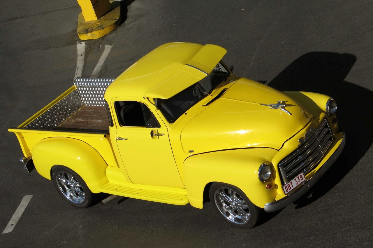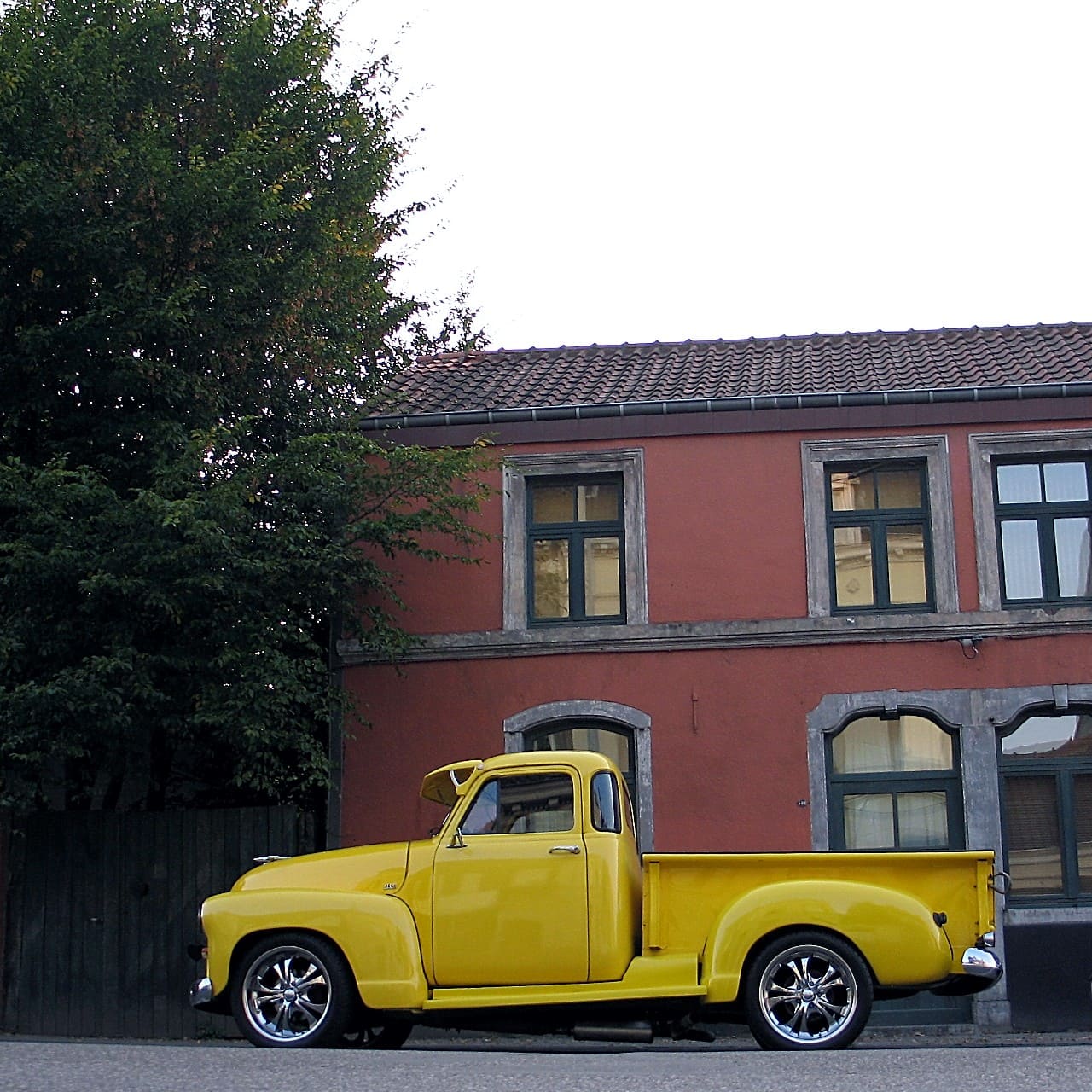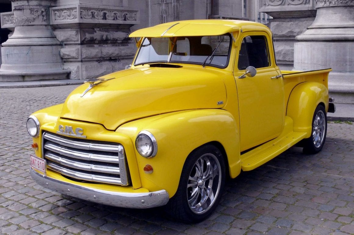 Le Pick-Up GMC/Chevy qui illustre la majorité (1er partie) de cet article, date de 1952… ensuite vous aurez droit à un Chevy SSR de même couleur jaune.