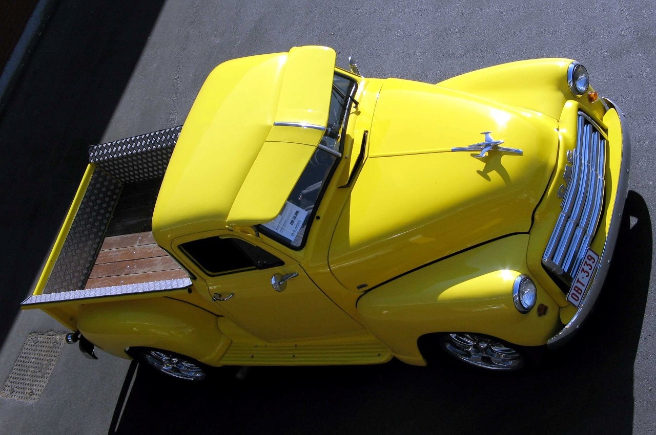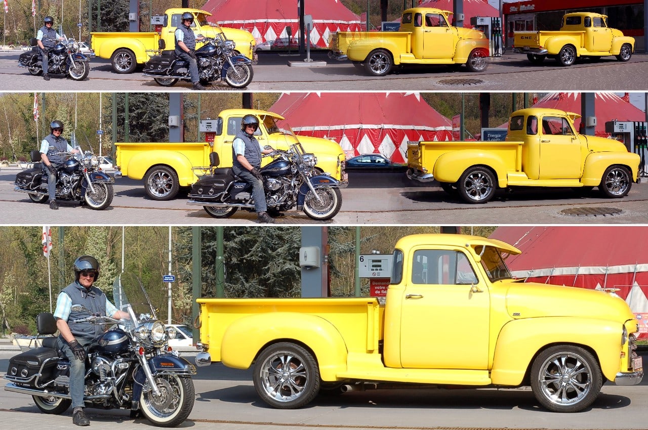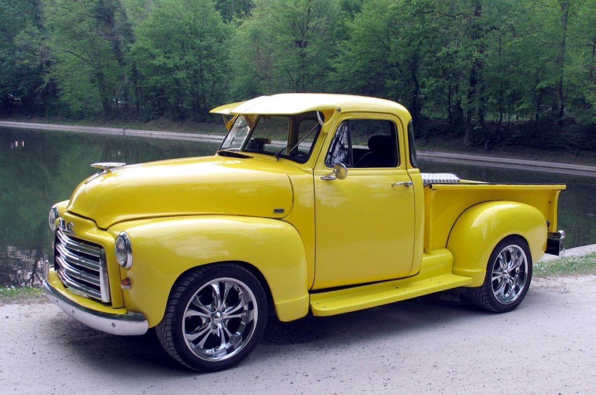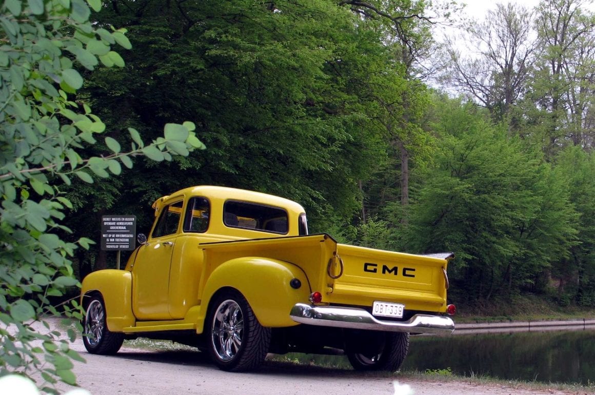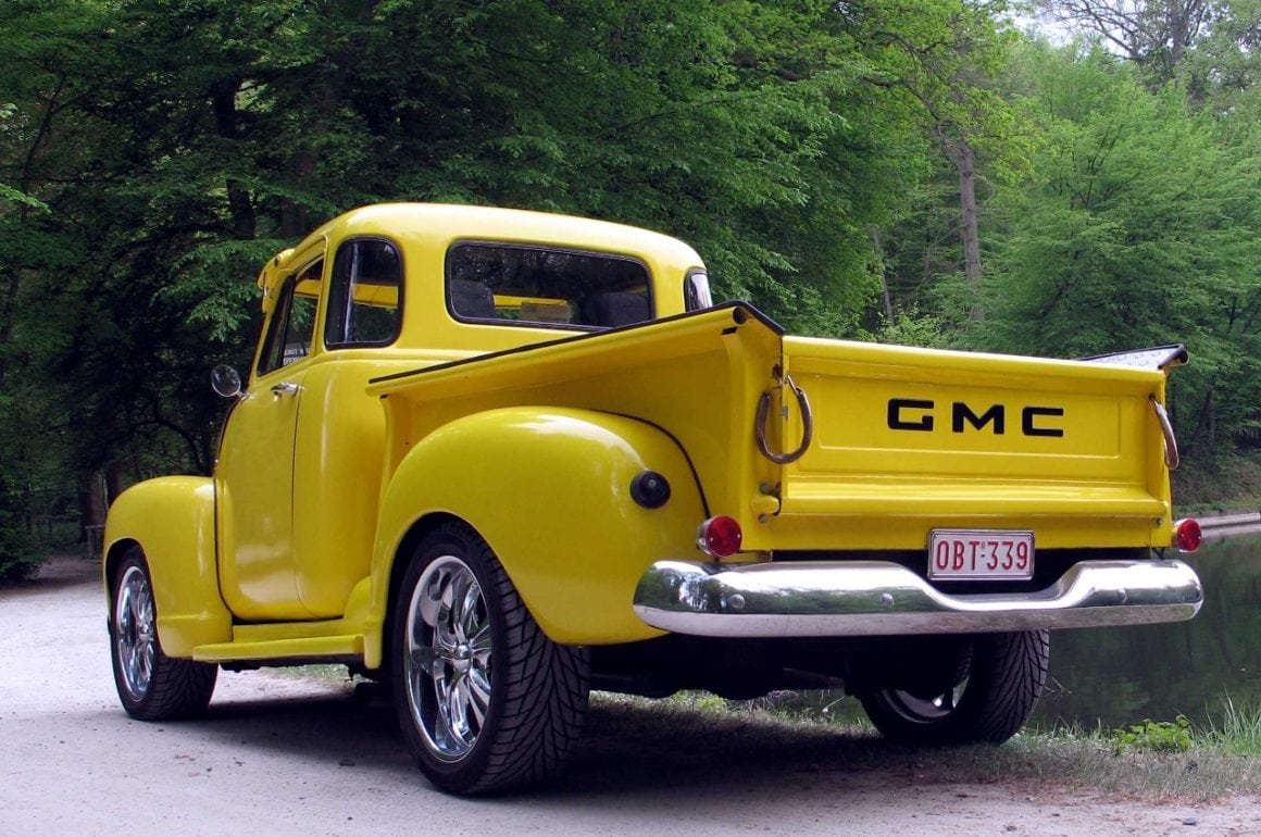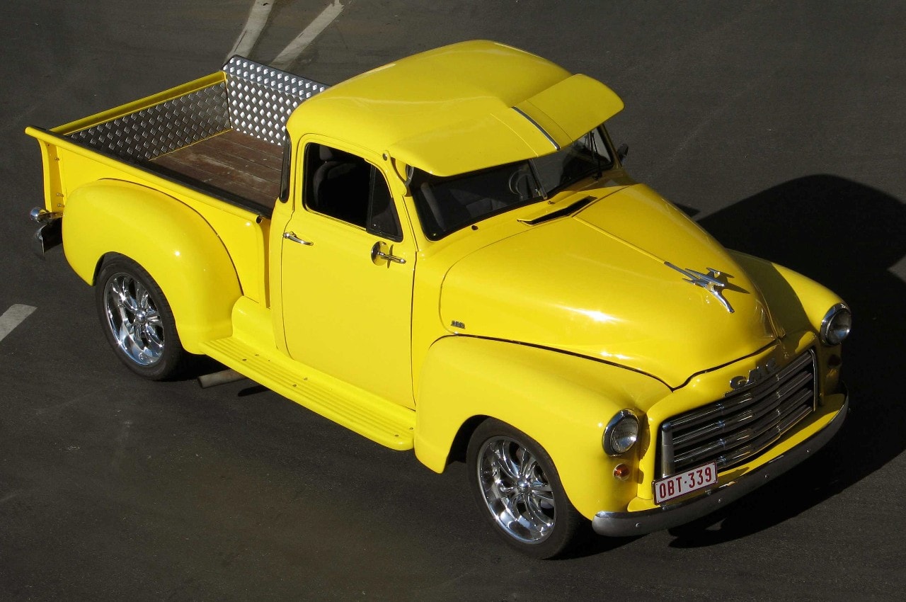 Le Pick-Up GMC/Chevy qui illustre la majorité (1er partie) de cet article, date de 1952… ensuite vous aurez droit à un Chevy SSR de même couleur jaune.