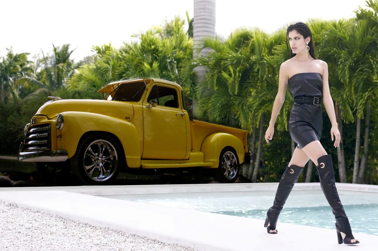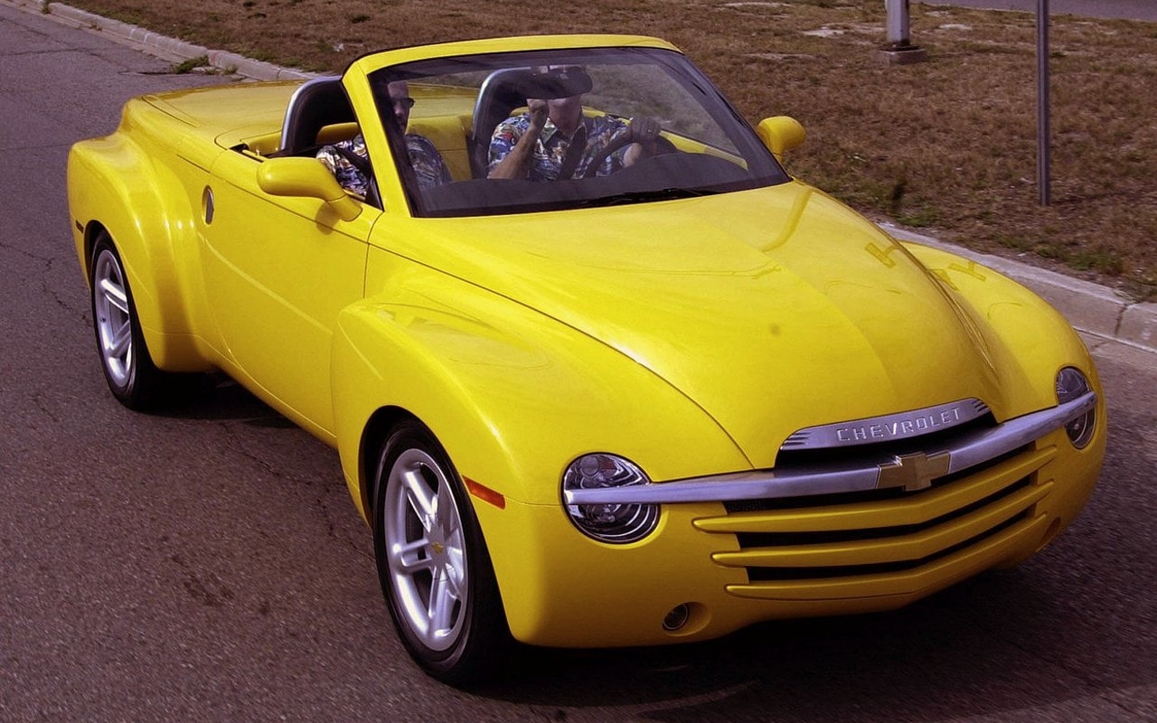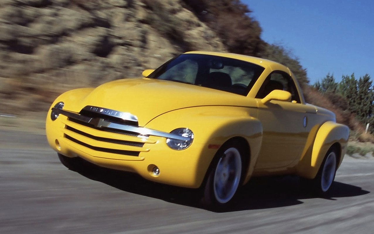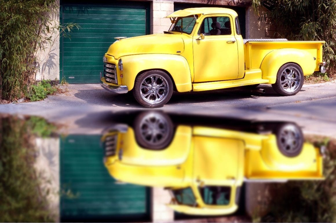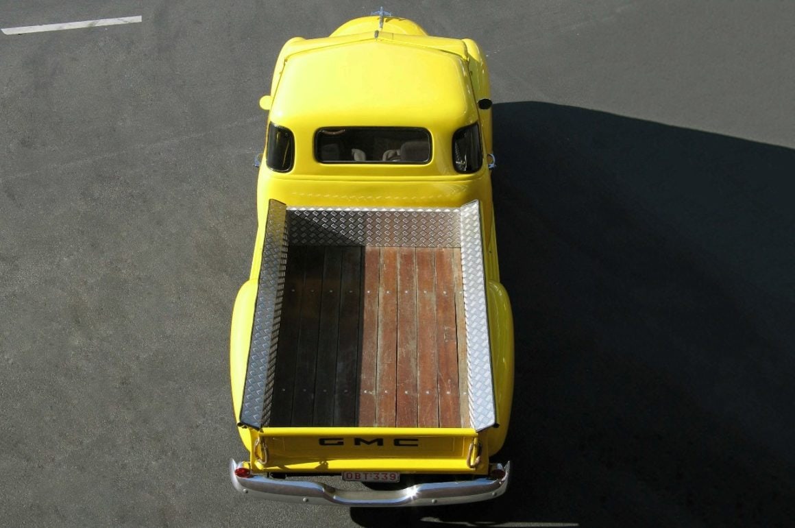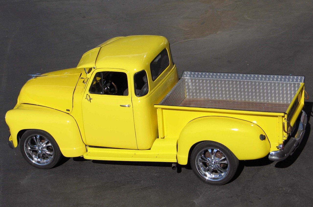 Le Pick-Up GMC/Chevy qui illustre la majorité (1er partie) de cet article, date de 1952… ensuite vous aurez droit à un Chevy SSR de même couleur jaune.