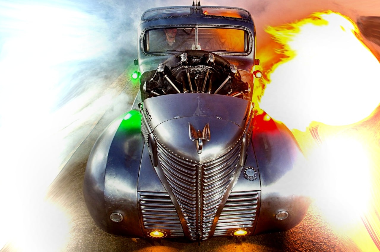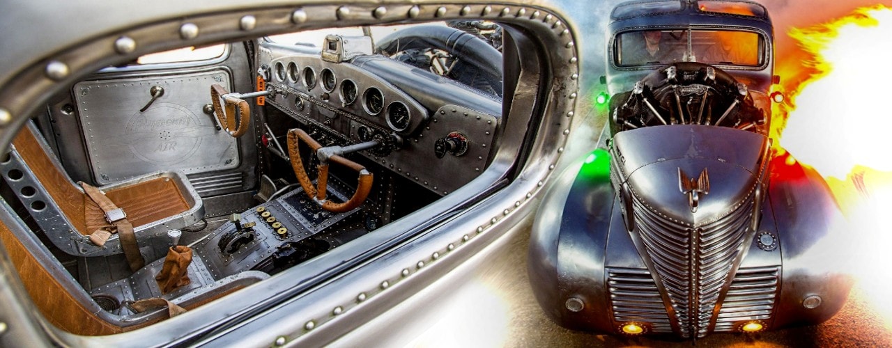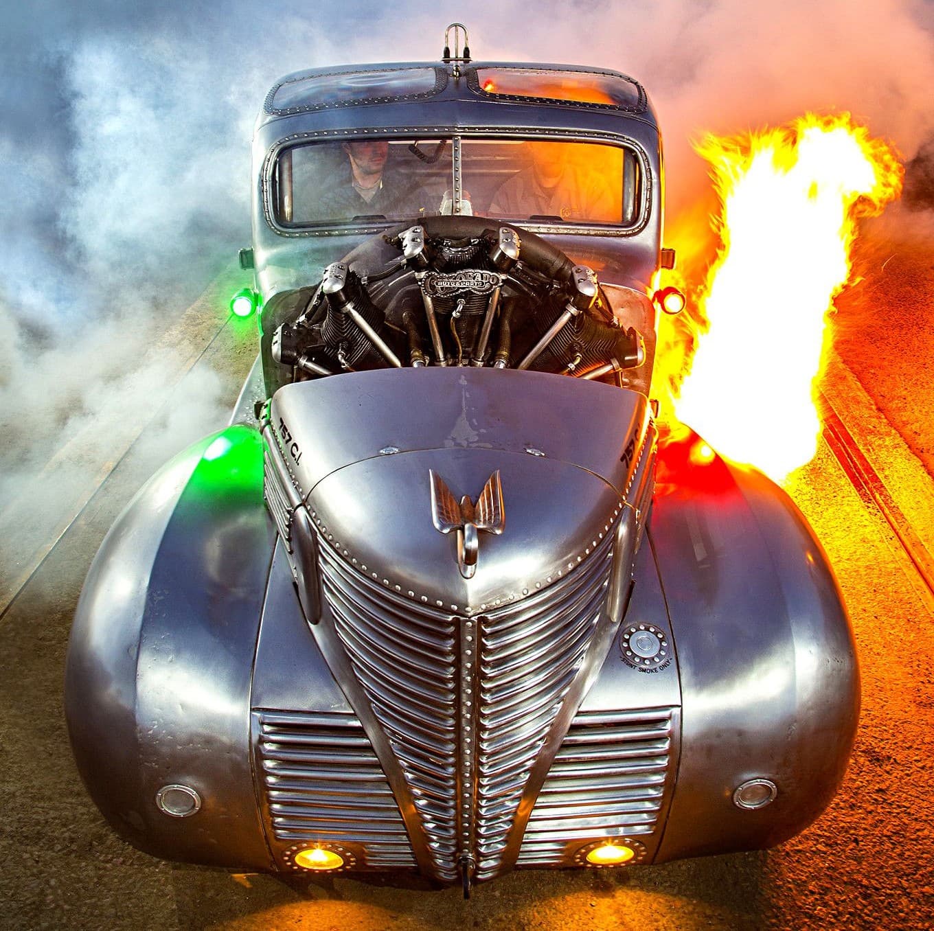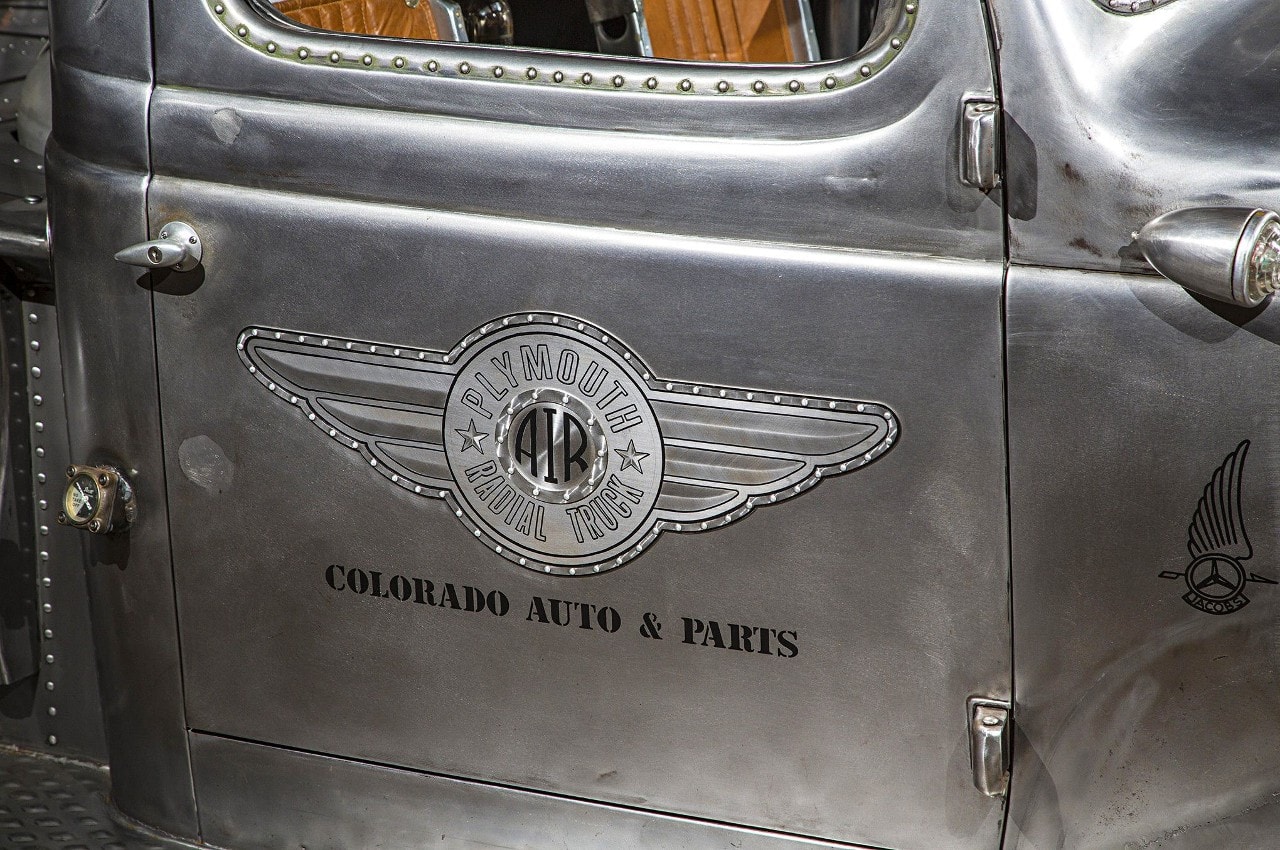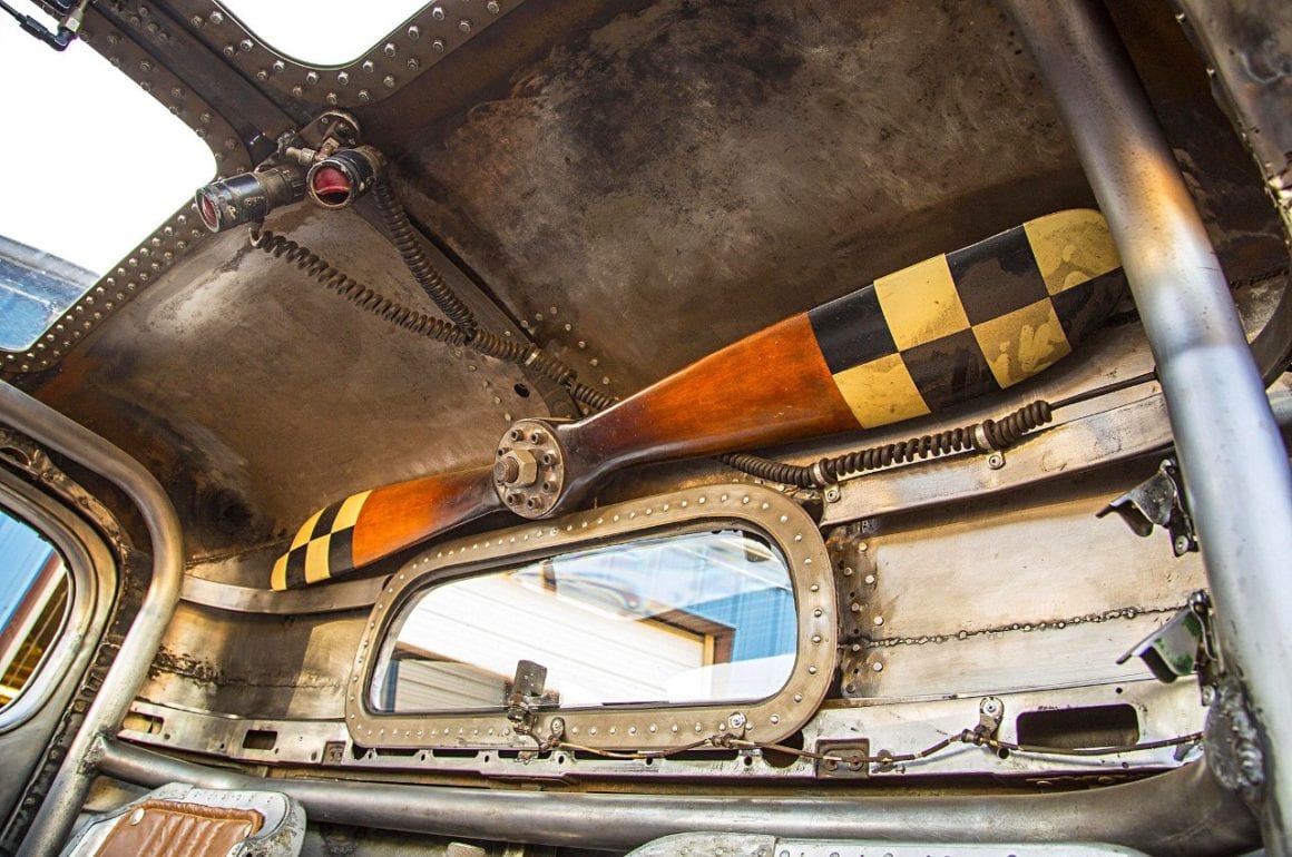 (Bien deviné, pas beaucoup savent et confondent, car le moteur en étoile n’est pas typique de l’aviation seule dans cette build. Le Truck-Pick-up que j’ai utilisé de basic c’est un camion Radial de Air de Plymouth, comme on l’appelle simplement un pick-up de Plymouth de 1939 qui a eu un moteur 7 cylinders étoile 12,5 litres d’un avion rangé dans le compartiment moteur. C’est une pièce folle et il fonctionne avec le thème aéronautique d’avant en arrière).