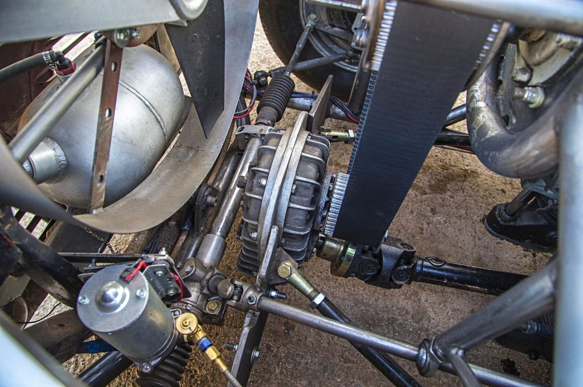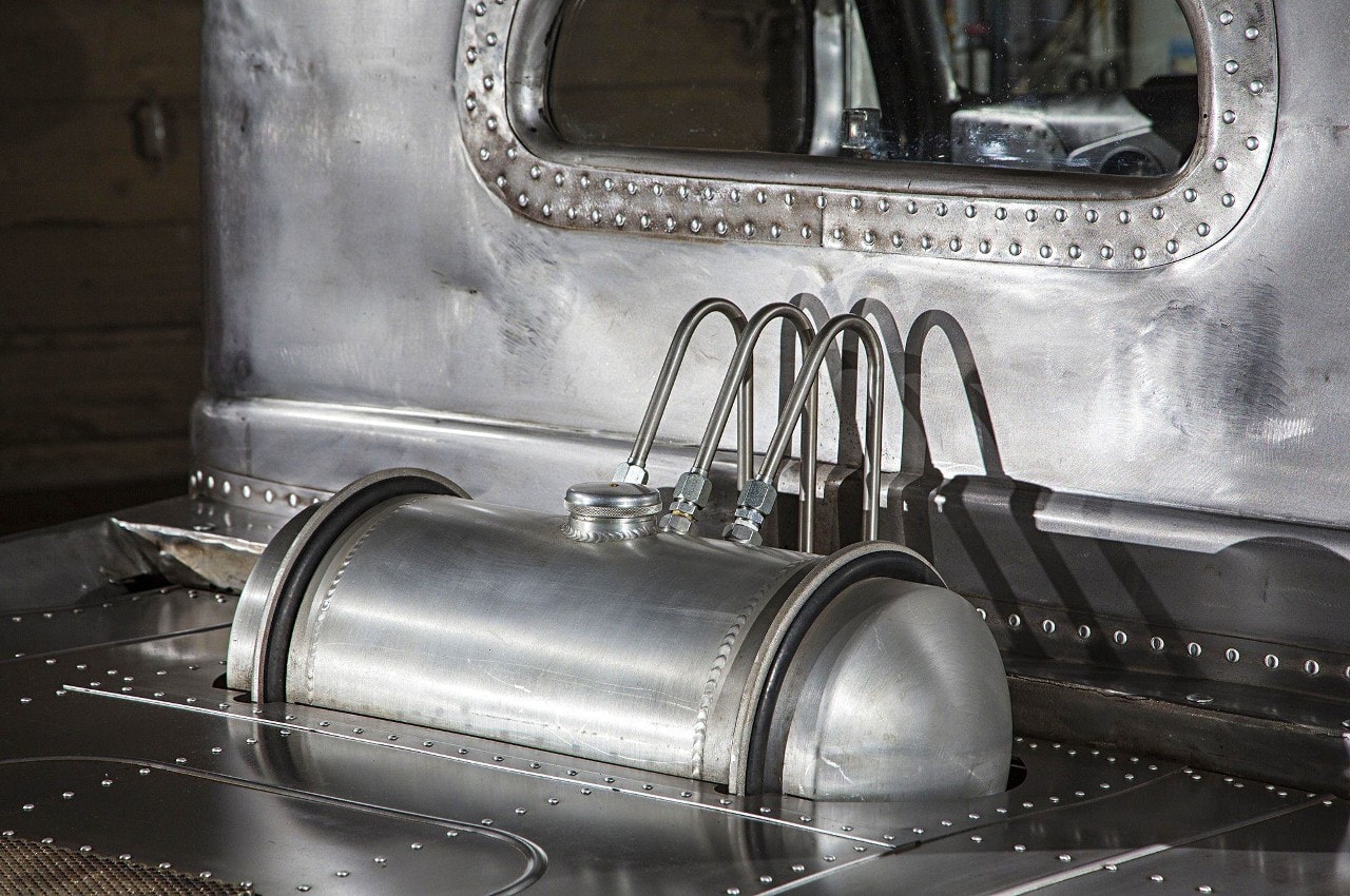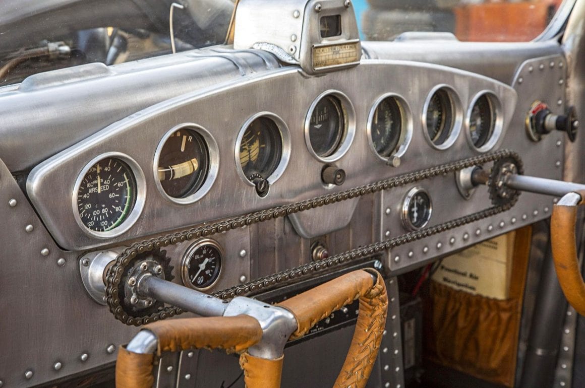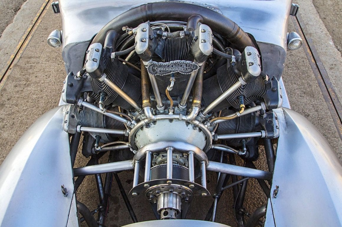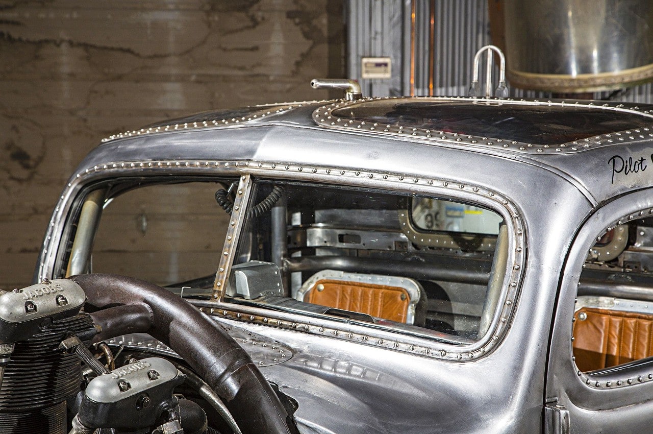 (La pièce maîtresse est évidemment le moteur d’avion étoile, un sept cylindres 12,5 litres construit par Jacobs Aircraft Engine Company pour le Cessna 195… il produire 300 chevaux, le moteur n’a pas été choisi évidemment parce qu’il fait une tonne de puissance, il était plutôt un choix esthétique et thématique, comme le reste adoptait le look d’un avion de l’époque des années ’30 qui inclut de la tôle rivetée, une paire de commandes pour le pilote et le copilote qui apparaissent comme s’ils venaient tout droit sur le Spirit of St. Louis)…