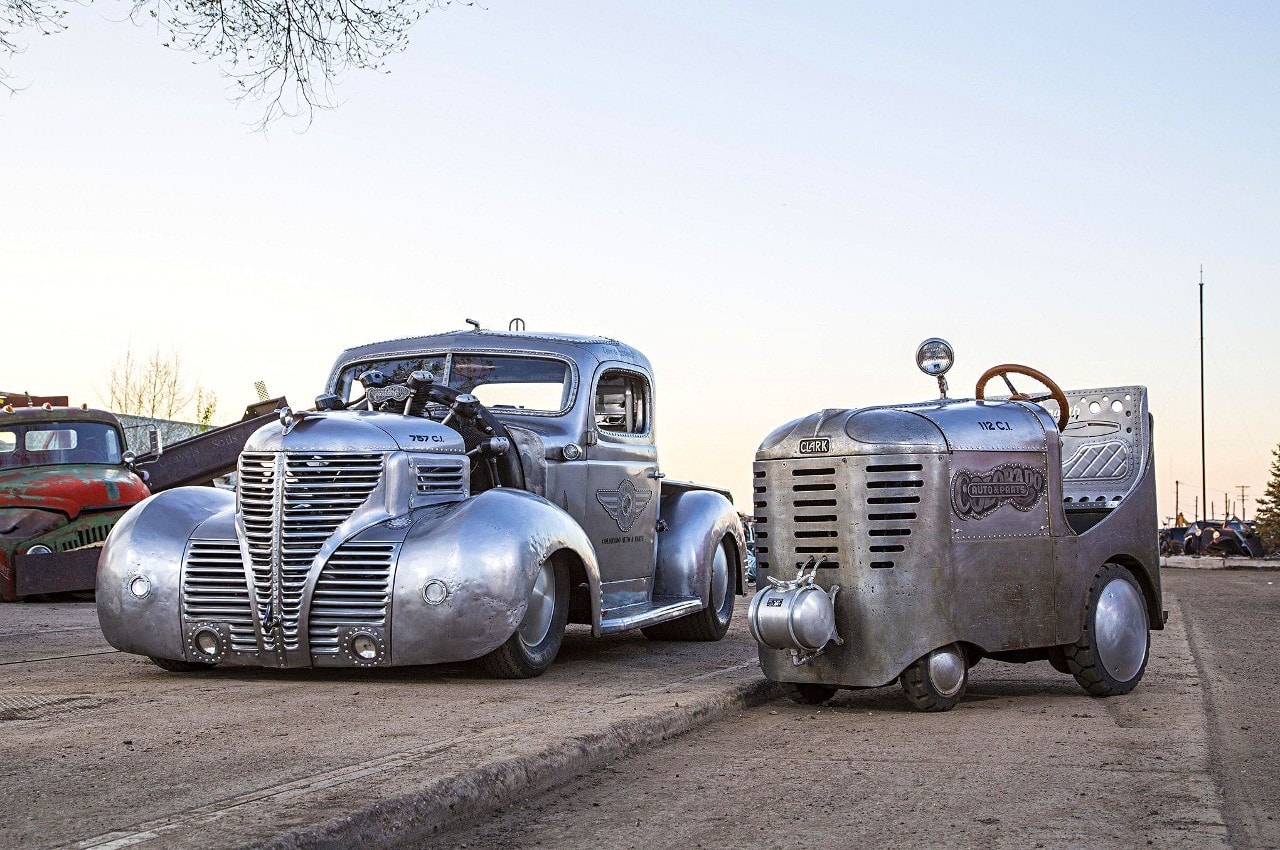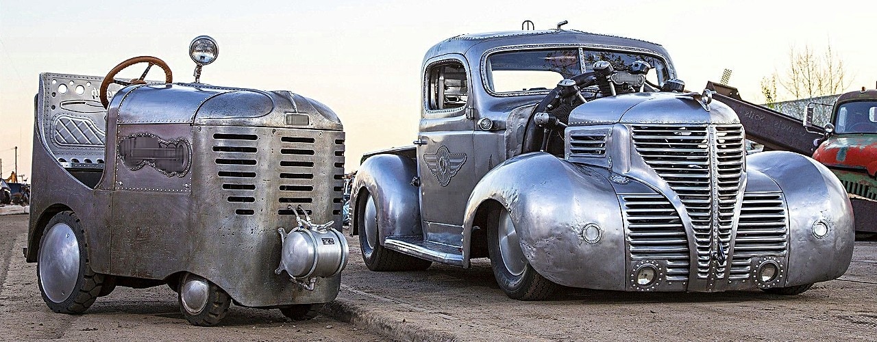 Gary Cors et son équipe œuvrant sous l’appellation surprenante d’audace et de recherche de “Colorado automobiles” se sont dit les Huns aux zôtres… qu’il était temps d’ouvrir les vannes du réservoir de l’inventivité burlesque de l’univers et de commencer à apporter de l’inventivité débilitante à partir d’en dehors du monde des Pick-Up’s façon Steam-Punk-Rat-Rod’s !