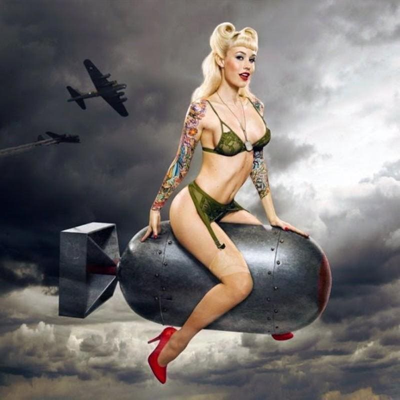 Mais les pin-up présentent peut-être une particularité dans l’histoire de la représentation féminine érotique : le rôle direct qu’on leur a fait jouer et qu’on leur a attribué, est lié intimement à l’histoire politique et économique du XXième siècle.