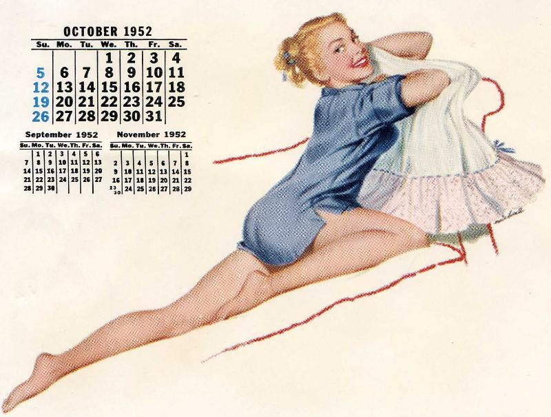 Une des séductions primordiales de la pin-up est qu’elle est à la fois irrévérencieuse et complètement intégrée aux normes sociales et morales de leur époque : formes maternelles, activités “féminines”.