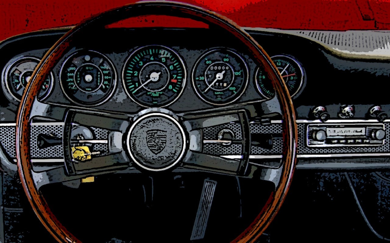 C’était déjà la magie Porsche des années soixante…, avec en prime une belle ergonomie soulignée par la présence de cinq cadrans au tableau de bord alors que sous la pluie, on apprécie les essuie-glaces à trois vitesses.