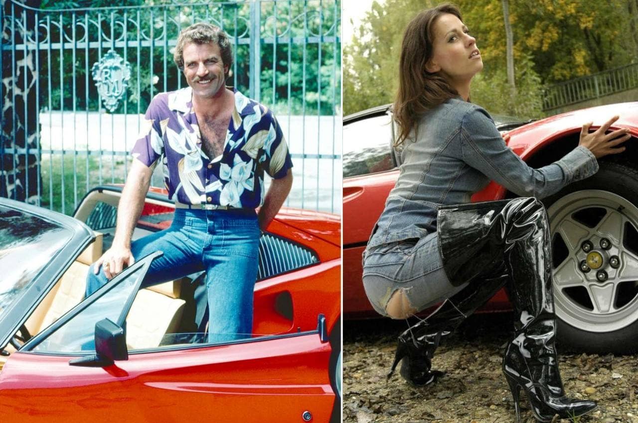 A noter que Tom Selleck, alias Magnum dans la série TV du même nom, va se déplacer de 1980 à 1988 dans 155 épisodes au volant d’une 308 GTS qui contribuera également à la renommée de la Ferrari 308, particulièrement le coté ridicule de son dépassement d’une tête du pare-brise…, le réalisateur de cette série, eut mieux fait de modifier la hauteur du siège pour éviter cette vision cocasse ! Thomas Magnum roulait en Ferrari sur les routes d’Oahu, sous le soleil d’Hawai…, mais cette petite île idyllique était remplie de vahinés, de jolies filles, de vétérans du Vietnam (dont Magnum), de truands, de mafieux, et de bien d’autres choses encore (dont l’inoubliable majordome Higgins)…, heureusement Magnum, avec son charme bourru (poilu serait plus approprié), ses chemises à fleurs et ses shorts courts, y défendait les orphelin(e)s et se tapait les veuves dans cette série TV du dimanche après-midi des années ou il n’y avait pas Internet… il fallait donc s’occuper autrement, et les jeunes apprenaient ainsi que pour être un homme il fallait conduire une Ferrari, être poilu, et savoir tirer tout ce qui bouge…(se servir d’une arme à feu également), mais que la vie était douce si on la laissait suivre son cours…, Zeus, Apollon, au pied wouah-wouah !