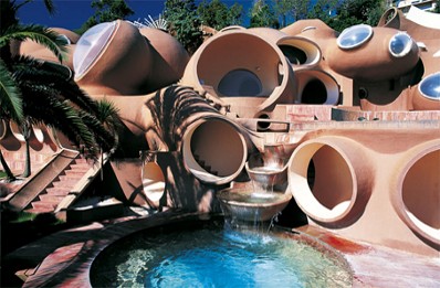 A l’intérieur, tout est rond, à commencer par la porte d’entrée les couloirs cylindriques, les fenêtres-hublots, et le mobilier conçu sur mesure. Sol mouvant, plafond ondulant, murs courbes, fenêtres sphériques ou ovoïdes, lit rond, placard rond, canapé rond, baignoire ronde…