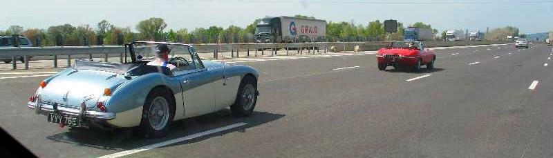 Ensuite, j’ai assisté à un duel de papys au volant, l’un d’une Austin Healey 3000, l’autre d’une Jagurar Type-E 6 cylindres. Le reste du voyage ne me fit plus voir de voitures hors normes… Parti de Grimaud/St-Tropez à midi, j’étais à Bruxelles/Uccle le même soir à 20h30, belle moyenne compte tenu (sic !) des limitations…