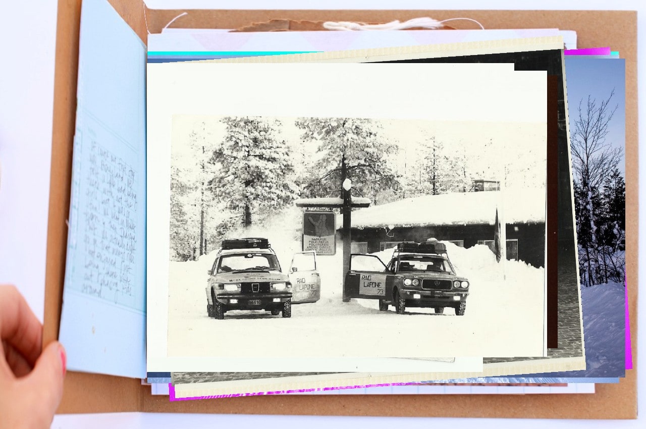 La glace a fait son apparition sur les routes, notre cloutage standard fait merveille, la stabilité incroyable de la Saab également mais à bord du coupé RX3, le manque de place surtout à l’arrière et la sécheresse des suspensions irritent un peu notre second équipage qui ne tarit pourtant pas d’éloges sur les montées en régime de ce double Wankel.