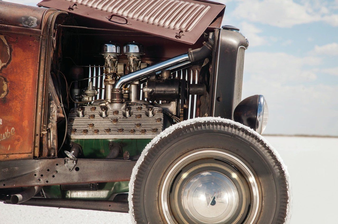 “Rat rod”… est sans doute l’un des mots le plus maltraité du champ lexical automobile, il date du début des années 1990 et a été créé pour surnommer la tendance qui émergeait alors parmi les Hot-Rodders, d’utiliser des véhicules des années 1950 en exagérant leur look “Jalopy” : basses voire surbaissées, bruyantes, avec des pneus arrière énormes et de très gros moteurs.