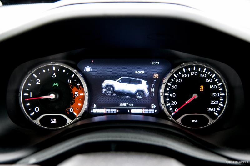 Pour les férus du 4X4 qui veulent absolument passer partout, Jeep propose une version nettement plus casse-cou baptisée, Trailhawk, uniquement entraînée par le deux litres diesel MultiJet de 170 chevaux/350 Nm associée à la toute nouvelle boîte automatique ZF 9 rapports que l’on trouve déjà sur les Jeep Cherokee et Land Rover Evoque…, avec en plus une garde au sol accrue de 20 mm et portée à 22,5 cm, des plaques de protection, des crochets d’attelage et des boucliers rabotés offrant de meilleurs angles d’attaque, sans oublier des teintes flashy…, mais également une position supplémentaire sur la molette de sélection des modes de conduite, Rock…, ça promet.