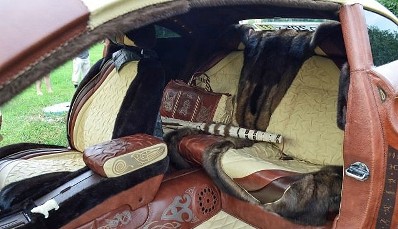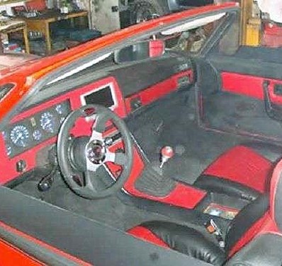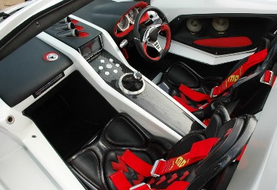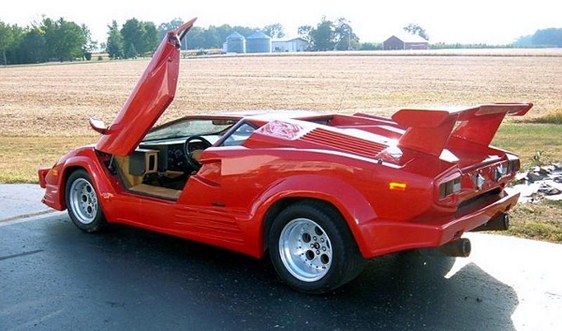 Comment savons-nous qu’il ne s’agit pas d’une vraie Lamborghini Countach ? La voiture est trahie par ses deux pots d’échappement…, la prochaine fois, il vaudrait mieux installer de vrais pots d’échappement au lieu de deux tuyaux de poêle…, par ailleurs, l’intérieur laisse beaucoup à désirer, avec son abondance de faux cuirs, ses rembourrages de siège avec des trous béants et des coutures ratées ainsi que de la colle visible, sans oublier les énormes logos cousus, décidément très kitsch…, mais bon, de loin, elle ressemble étrangement à l’original et c’est bien cela qui compte.