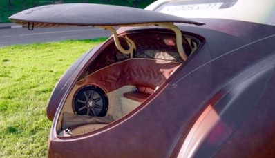 On peut toujours envisager de commander une voiture à un prix exorbitant, de patienter pendant trois mois, avant d’aller tranquillement la chercher chez le concessionnaire…, un autre choix, c’est de travailler pendant quinze mois (800 heures) pour construire sa propre voiture de rêve (ou de cauchemar) et, ce faisant, d’accumuler suffisamment de “matière” pour pouvoir raconter, dans les cafés, des anecdotes croustillantes jusqu’à la fin de ses jours…, comme par exemple le fait que des panneaux noirs ont été récupérés sur un vieux kayak, ou qu’une ancienne niche pour chien a été intégrée dans l’engin, de même qu’un grille-pain et un mixer…, de telles histoires, ça n’a pas de prix.