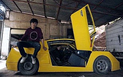 L’étudiant chinois Chen Su Jin Miao rêvait depuis des années de posséder sa propre Lamborghini, mais son argent de poche n’aurait même pas suffit à l’achat d’un enjoliveur…, puisque c’est ainsi, pourquoi ne pas construire soi-même sa propre Lamborghini ? Après sept années de travail et un investissement d’à peine 3.500 euros, son rêve est devenu réalité…, malheureusement, sa Lambo ressemble surtout à une voiturette en Lego et la vitesse de pointe de la chose ne dépasse pas 65 km à l’heure. Comble de malheur, Chen a oublié de faire agréer le véhicule, de sorte qu’au bout du compte, il n’est même pas autorisé à circuler sur la voie publique.