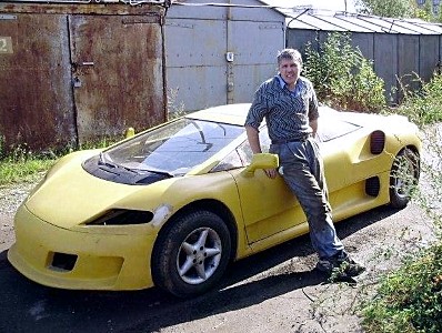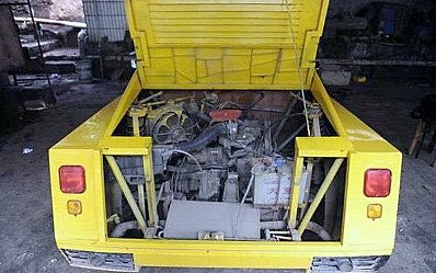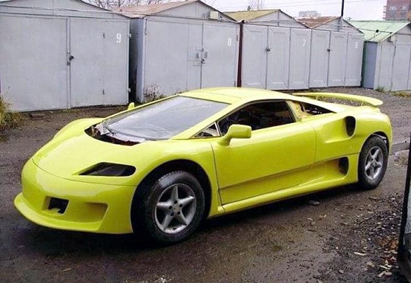 Difficile de croire que cette épave ait pu servir de base à la construction d’une voiture de sport jaune aux lignes aérodynamiques…, Konstantin Myatnikov s’est vraiment surpassé, sans compter qu’au beau milieu du chantier, il a soudainement changé d’avis et modifié complètement le toit de la voiture…, un résultat magnifique, cela ne fait aucun doute, jusqu’à ce que vous souleviez le capot et démarriez un vieux moteur de plus de trente ans d’âge, usé jusqu’à la corde…