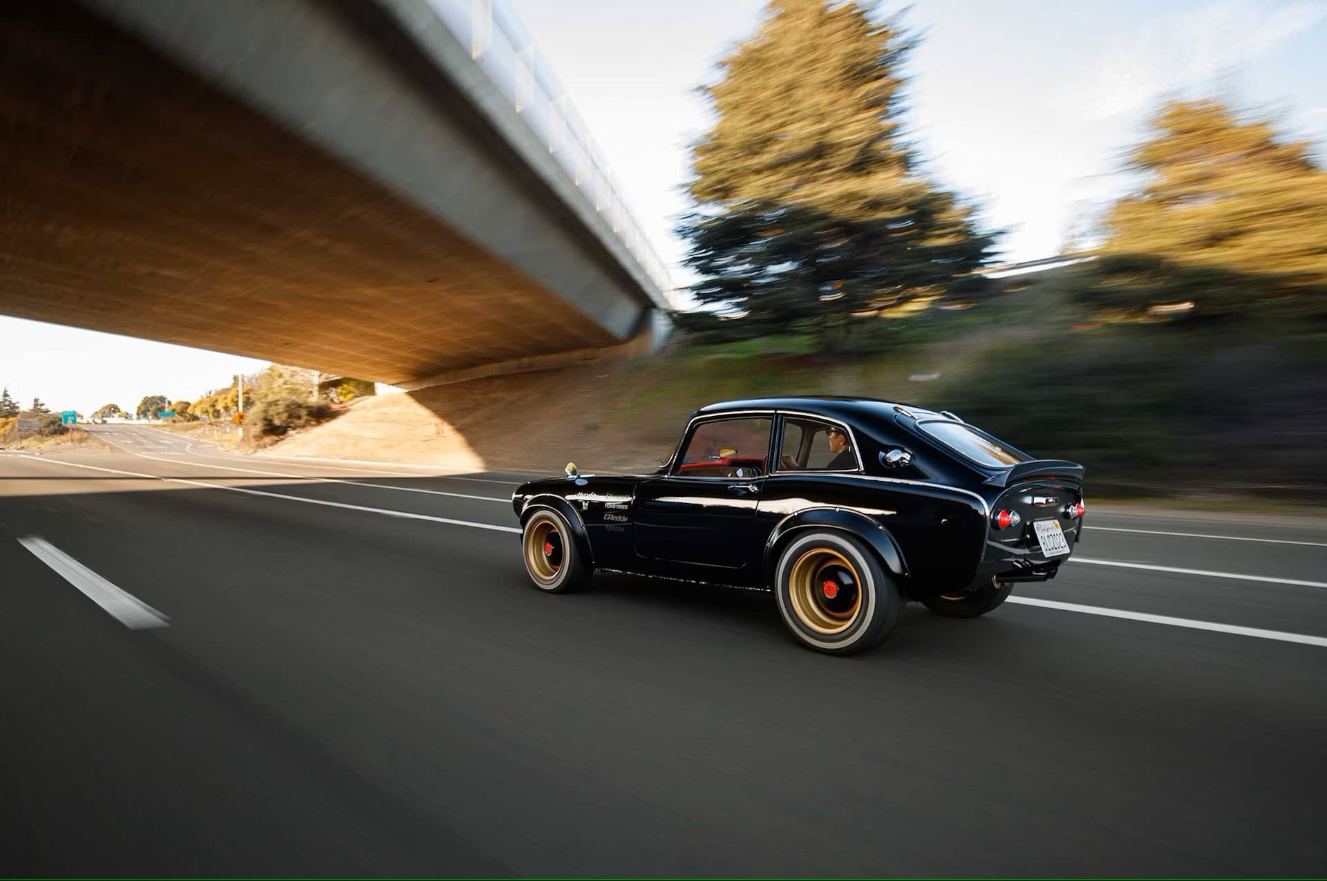 C’est une société de Seattle que l’on trouve généralement en train de faire sa magie sur une Porsche, une BMW ou une Mercedes. Le niveau des compétences de DG peut être vu et apprécié dans la série de photos, mais aussi cliché que cela puisse paraître, en réalité, cela dépasse l’entendement, surtout si l’on considère que ce châssis a plus de 55 ans à son actif. Passez devant le panneau de custode arrière légèrement bombé et vous apercevrez probablement l’extension de coffre Pandem qui clôt avec confiance le langage de conception des années ’60, sans vergogne influencé par l’Europe.