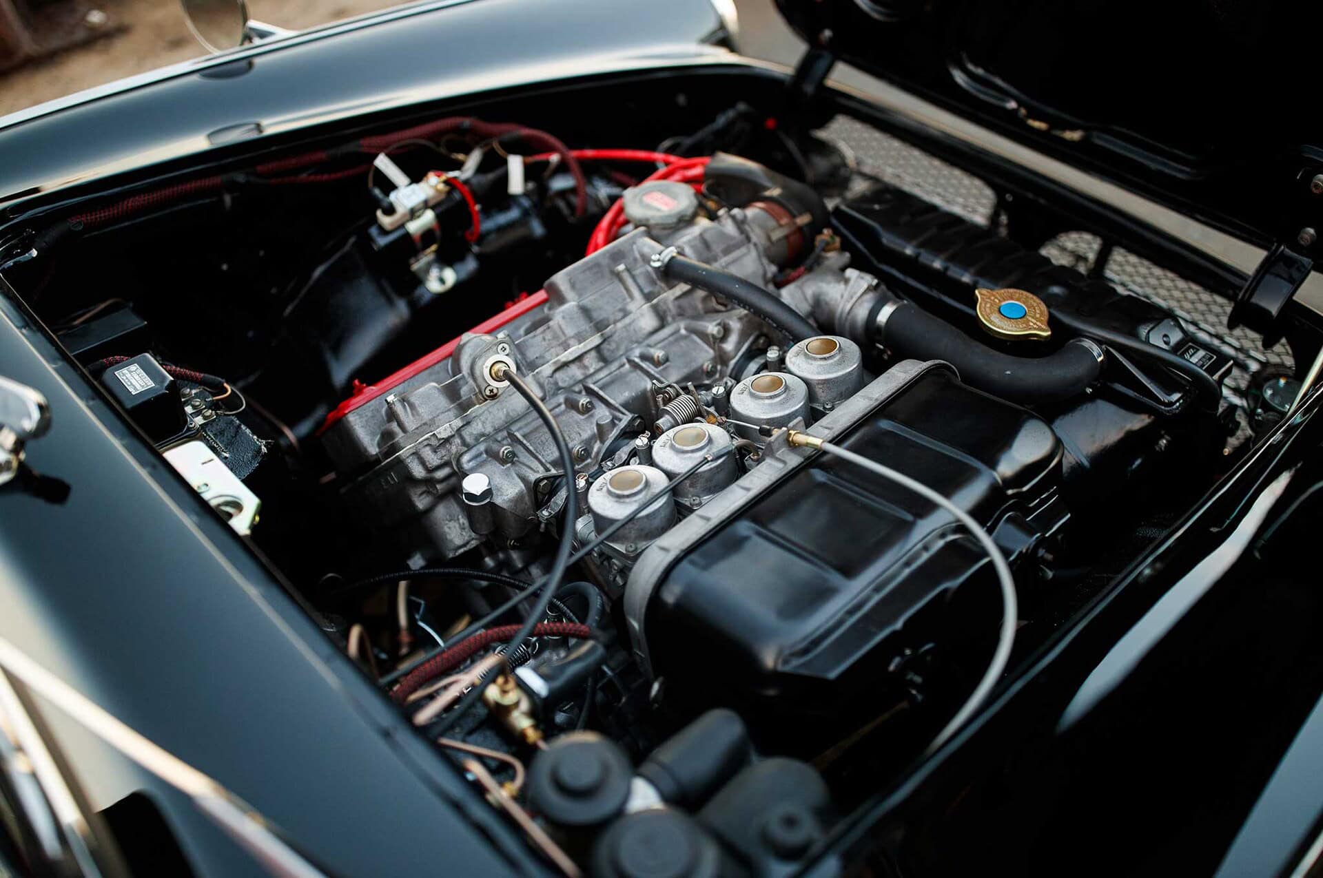 Servant essentiellement de moitié à l’avant, sa ligne supérieure repose à un cheveu en dessous de la calandre d’usine et son point le plus bas, sculpté et légèrement en avant, amène l’avant de la voiture à une hauteur beaucoup plus respectable. Des phares jaunes inquiétants S.E.V. Marchal brillent à la place des anciens stockers et offrent un guidage supérieur pour tout type d’aventure nocturne. Sans aucun doute, une bonne partie du succès de l’apparence extérieure du restomod peut être attribuée à la peinture et à la carrosserie immaculées de DG Vintage Coachworks.