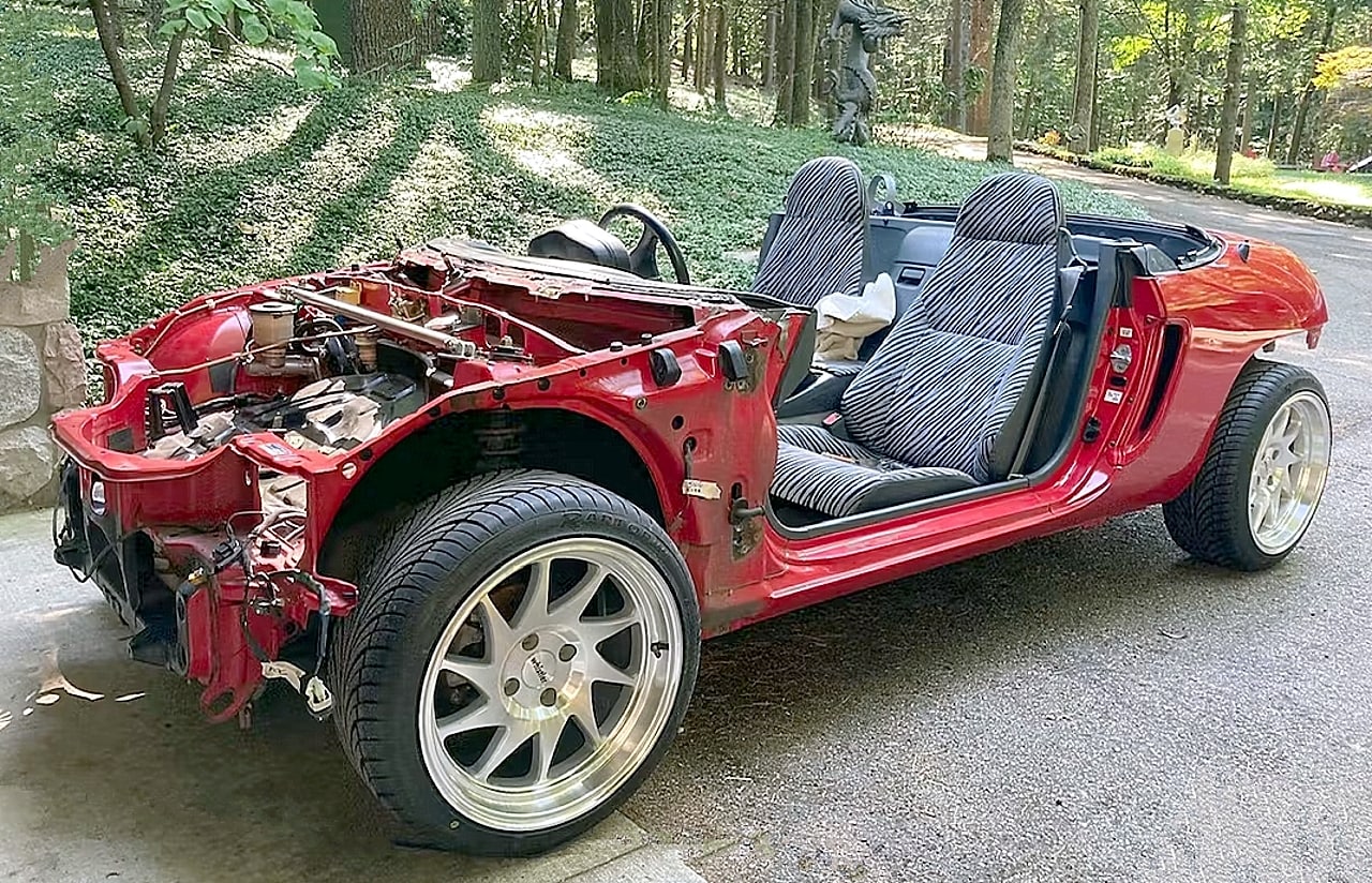 -Oui. Connues sous le nom de voitures kei, ces machines étaient propulsées par des moteurs dont les cylindrées étaient limitées à 660 cm3 et dont la puissance était plafonnée à 63 chevaux. Il y a deux ans, j’ai trouvé une Honda Beat de 1991 dont j’avais besoin. La Beat que j’ai acheté était en excellente forme avec seulement 42.000 kilomètres sur son sonomètre kilométrique. J’ai choisi cette voiture en particulier en raison de son empattement court, de ses emplacements de sièges et de son style de carrosserie. Le processus de conception a commencé avec des croquis, qui ont été suivis par un modèle d’argile. Plus tard, j’ai construit plusieurs modèles à l’échelle 1/24 à partir de mes dessins de CAO pour correspondre aux dimensions du châssis unicorps de la Beat. Le châssis supportant les panneaux de carrosserie est en aluminium d’une épaisseur d’1/8e de pouce. J’ai embauché un soudeur mobile pour assembler ces pièces. Un autre a utilisé mes fichiers de CAO pour couper mes panneaux de carrosserie de lamelle des feuilles d’aluminium. La carrosserie est fixée au châssis en aluminium avec de l’époxy et enveloppée d’une feuille de vinyle de couleur titane. En plus du coût de la Honda Beat de 12.000 dollars, j’ai dépensé environ 13.000 dollars en matériaux. L’ensemble du processus de construction n’a pris qu’un an.