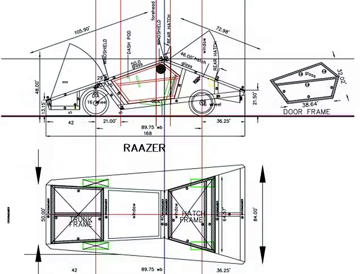 -J’ai toujours été fasciné par les concept-cars, en particulier les conceptions en forme de coin. Je possède une réplique de la Bertone Stratos de 1970 et aussi j’ai une Vector W8 de 1990 qui excellent toutes dans ce genre de design. Quand Elon Musk a présenté son CyberTruck, j’ai réalisé que je pouvais construire ma propre voiture en coin. Mon but était de faire dire que ma création avait été ciselée à partir d’un bloc d’aluminium. Ce qui se trouve sous ma Raazer est une Honda Beat, la dernière voiture à être approuvée par Soichiro Honda qui a commencé par recycler des petits moteurs dans une cabane en bois située à Hamamatsu. En 1948, lorsque le Japon déchiré par la guerre avait envie de transporter quoi que ce soit de quelque nature que ce soit, Honda a commencé à vendre des vélos motorisés. À peine une décennie plus tard, le premier concessionnaire Honda a ouvert en Amérique. Peu de temps après, les motos Honda ont surpassé les Triumph’s en Angleterre et les Harley’s-Davidson aux États. Aujourd’hui, Toyota, le plus grand producteur de moteurs du monde alimente tout ce qui bouge, des tondeuses à gazon aux avions à réaction.