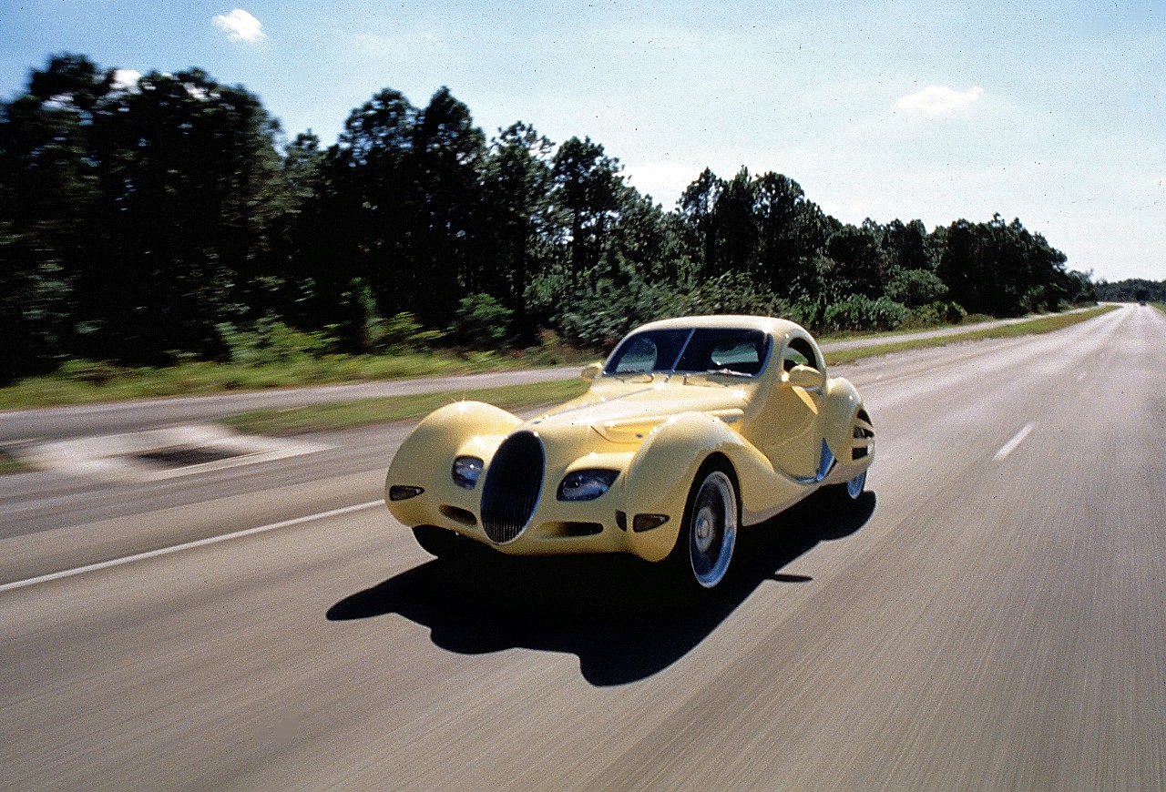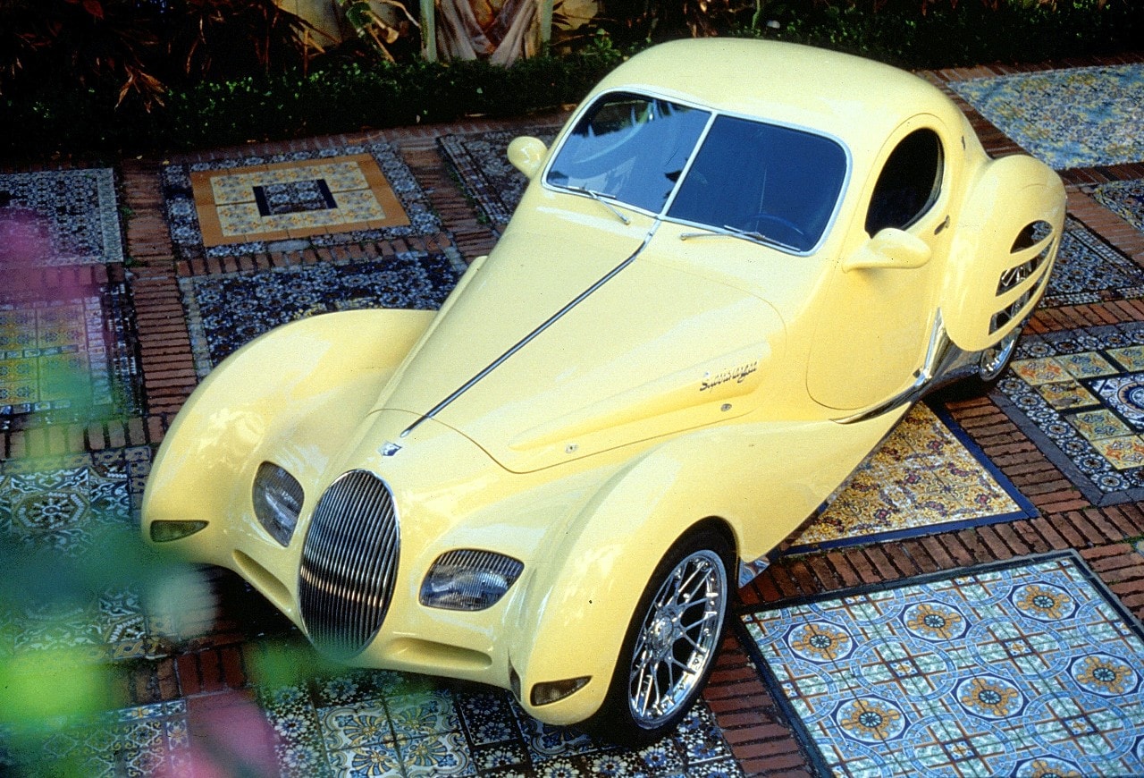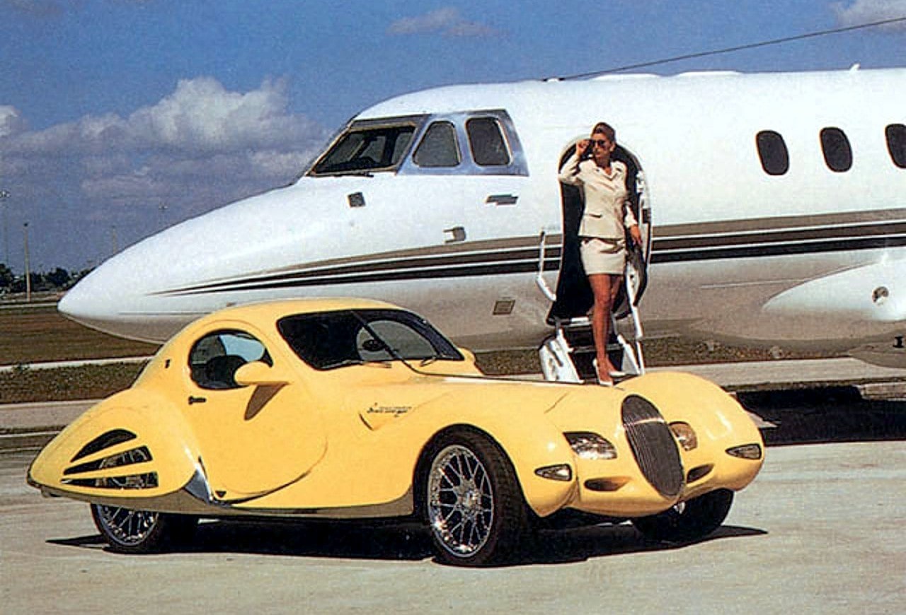 La plus “traditionnelle” est la “Yello-Talbo” (1996), une évocation de la Talbot 150SS carrossée par Figoni & Falashi en 1938, repensée et conçue comme une symbiose entre des éléments nostalgiques et futuristes, donnant un aspect inhabituel à cette voiture qui s’exhibe en une couleur jaune pastel…, dans un jeu de mots et de couleurs concernant son financier : “Yello”…, un des groupes musicaux en vogue dans les années ’90.