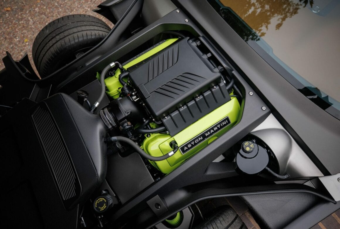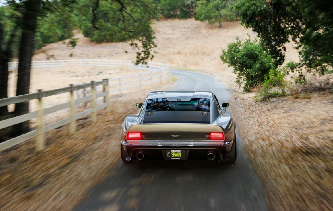 En fait, c’est le seul domaine qui a changé depuis les débuts de la voiture, Roadster Shop fournissant une mise à jour de la suspension et de nouveaux combinés filetés réglables dans trois directions pour un meilleur contrôle de la conduite. De manière quelque peu controversée, le V-8 original d’Aston Martin a été abandonné au profit d’un V-8 Ford Coyote suralimenté, Ringbrothers l’abordant de manière pragmatique ! Le V8 produisait en effet une puissance fiable de 805cv et pouvait être entretenu n’importe où aux USA, ce qui était très loin d’être le cas avec le V8 AstonMartin peu fiable et abominableùment couteux à entretenir et surtout quasiment impossible réparer. Boulonné à une boîte-pont manuelle à six vitesses Bowler TREMEC TR-6060 Magnum, le son et la puissance fournissent une motivation suffisante pour ignorer les puristes…