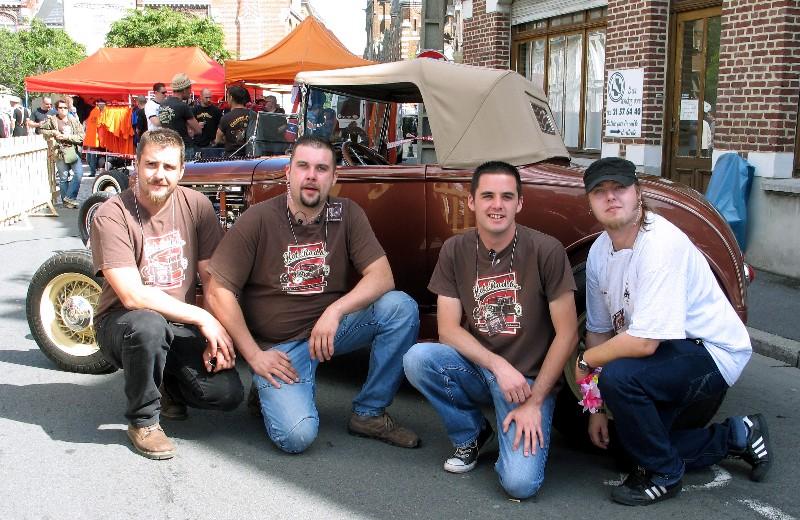 C’est Cédric, de http://www.hot-rod.be/ le deuxième en partant de la droite, avec ses frères, organisateurs de la section Hot-Rods et voitures américaines de Béthune Rétro…