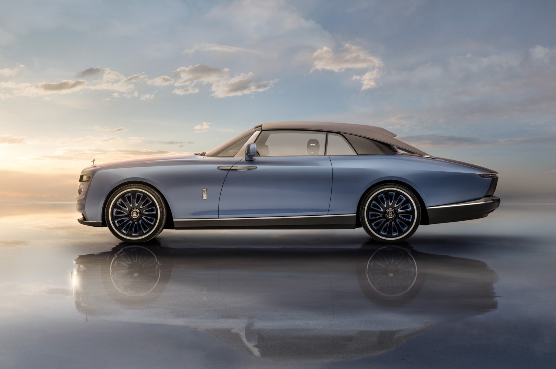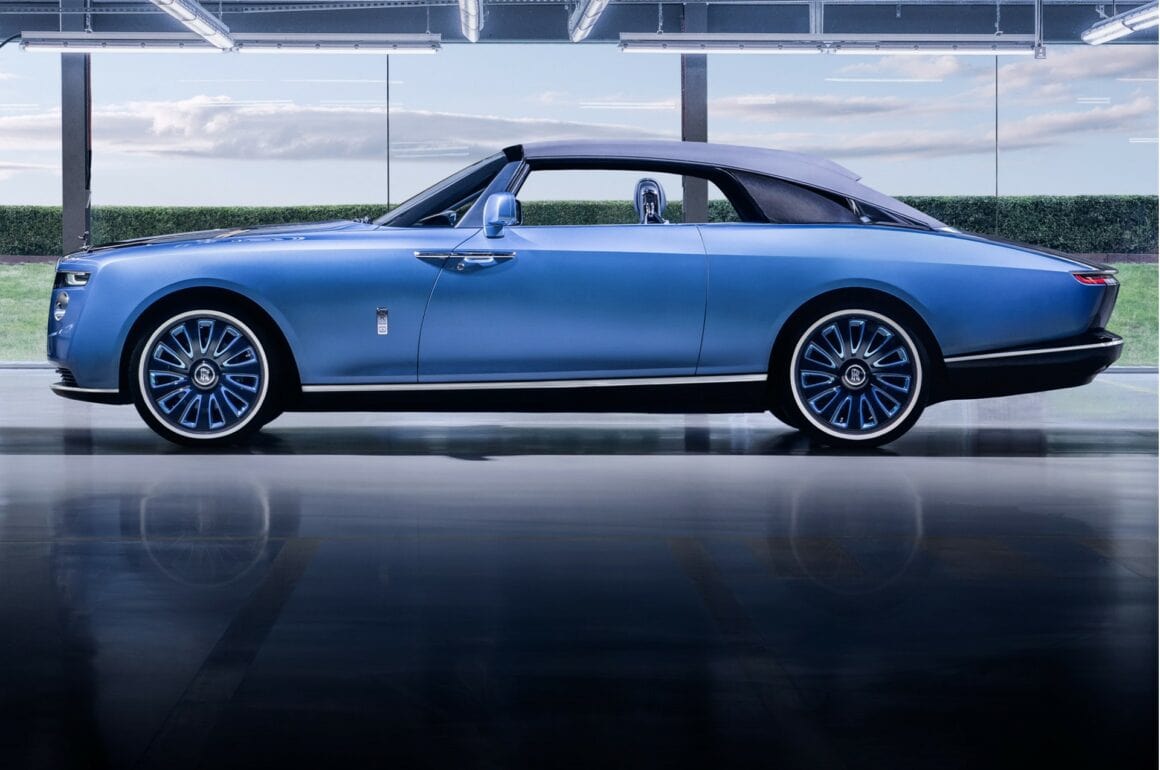 Produite à trois exemplaires, sur commande, la Rolls-Royce Boat-Tail inaugure un nouveau département “sur mesure” chez le constructeur britannique. À plus de 20 millions d’euros pièce, il s’agit de la voiture neuve la plus chère au monde. L’unique Rolls-Royce Sweptail présentée en 2017 annonçait la refondation, aujourd’hui actée, du département Coachbuild de la marque britannique. Comme son nom l’indique aux anglophones, cette division œuvre comme un carrossier et peut donc réaliser des véhicules de très petite série ou uniques, sur commande, avec des carrosseries de formes variées sur un châssis roulant qui sert de base technique. Ce travail est permis par la plate-forme modulaire semi-monocoque du constructeur qui, bien qu’appartenant au groupe allemand BMW, bénéficie d’une architecture exclusive. Il s’agit d’un châssis en treillis en aluminium dont les quatre points fixes, où vient s’attacher la carrosserie, sont situés aux quatre coins. Cela laisse une grande liberté aux designers et ingénieurs en ce qui concerne les dimensions et proportions des véhicules. Le premier modèle signé de cette nouvelle entité Coachbuild est la Boat-Tail, un cabriolet de près de 5,80 m de long, produit à trois exemplaires et conçu durant les trois dernières années avec les clients à qui ces autos sont destinées.