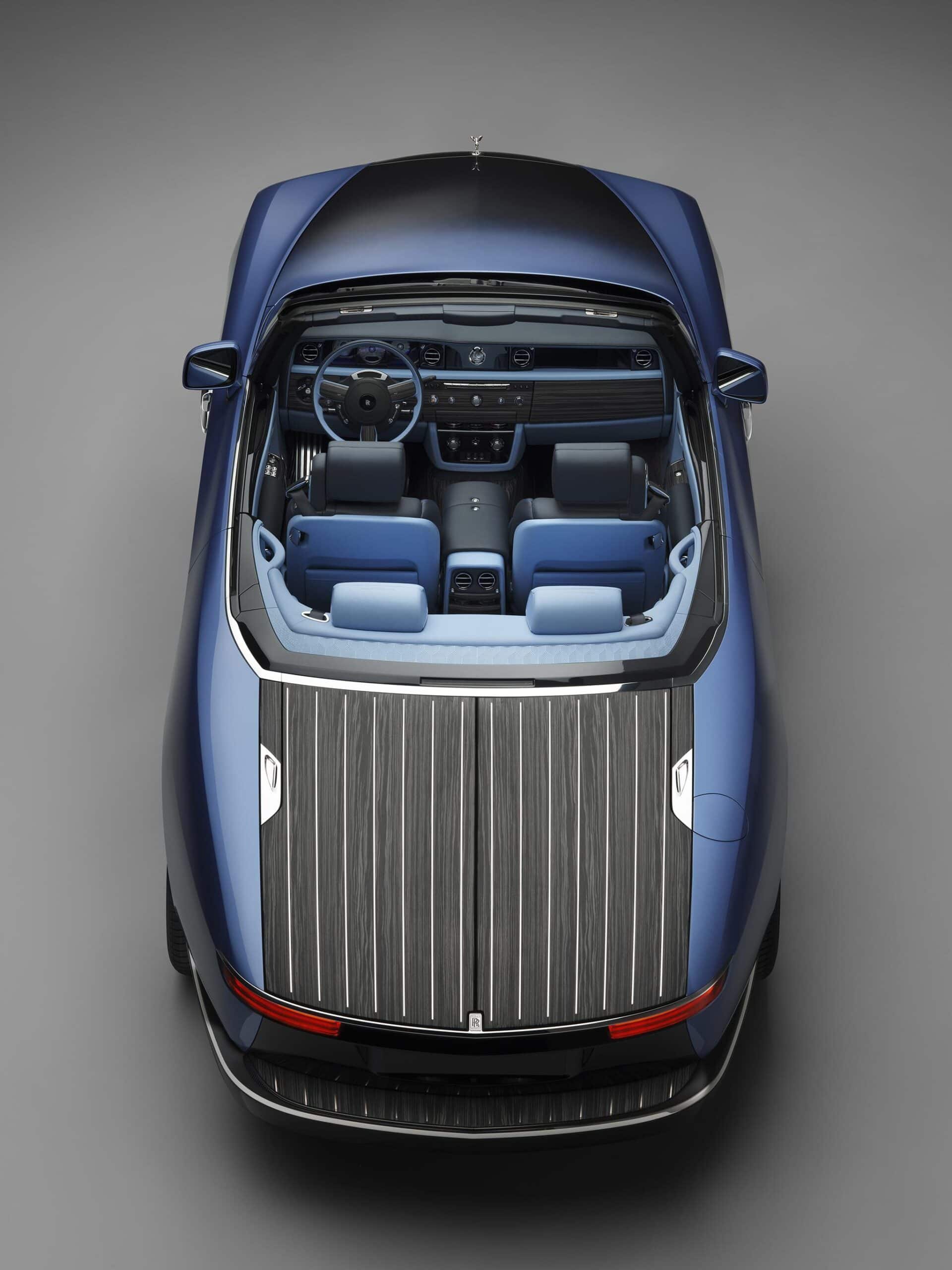 -La Boat Tail est le projet le plus ambitieux de la compagnie jusqu’à ce jour. Les clients viennent vers nous avec en tête une idée, c’est exactement ce qui se passait il y a cent ans. Ce retour aux sources remonte à la Sweptail en 2017 quand nous avons lancé le premier projet de l’unité Coachbuild des temps modernes. Ça a attiré l’attention de quelques clients qui voulaient quelque chose de similaire mais encore plus spectaculaire. Nous avons accepté ce projet il y a quatre ans et le résultat est la Boat Tail. Pour nous c’est le summum de toute notre activité chez Rolls-Royce, un nouveau modèle au luxe insolent et parfois inattendu. Exemple de finitions : les pans de l’arrière de la nouvelle voiture se lèvent latéralement pour former comme une table abritée par un parasol, afin de pouvoir déjeuner ou dîner en plein air depuis le véhicule, si l’envie prend à leurs très fortunés propriétaires. Nous avons l’intention de continuer et recommencer tous les deux ans. Nous ne parlons jamais de prix dans les accords avec nos clients, mais les rumeurs selon lesquelles la Sweptail aurait coûté 13 millions de dollars étaient assez proches de la réalité, et sachant que la Boat Tail est beaucoup plus raffinée et donc encore plus coûteuse, comptez sur 23 millions d’euros”…