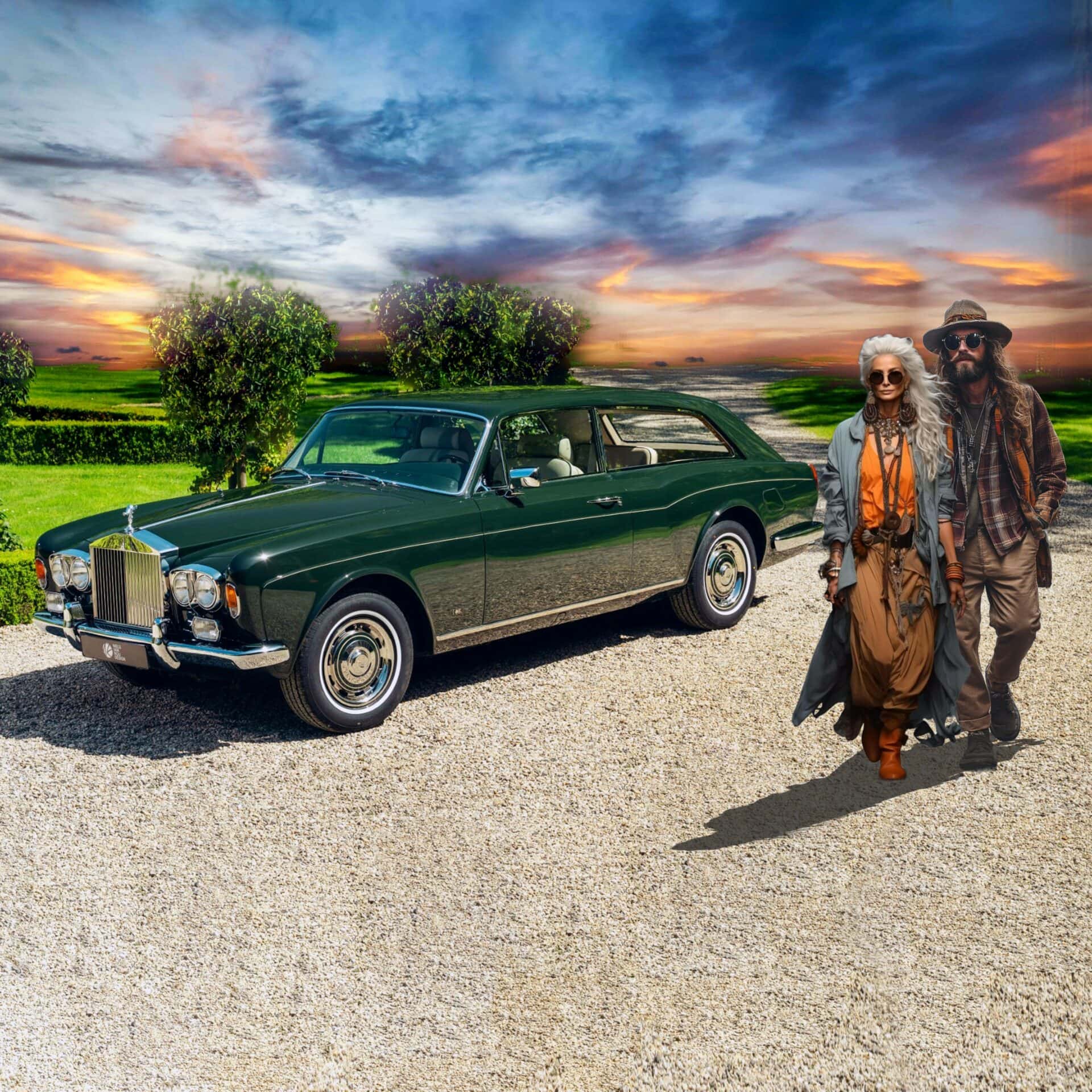 Non, on n’a pas greffé une boule de remorquage à la vieille Corniche pour qu’elle parte en camping, on l’a scalpelée, redessinée, et dopée pour qu’elle transporte des vélos de triathlon comme si elle sortait d’un rêve hollandais sous acide, un ravalement orgasmique, du lifting terminal, de la restauration qui coûte plus qu’un divorce mais promet une extase mécanique à la sortie du garage. Cette vieille belle n’a pas été simplement restaurée… Elle a été reconvoquée, réincarnée, resexualisée dans l’atelier comme des MILF’s de la tôle, prêtes à faire rugir leurs soupapes dans un dernier tour de piste. Le ravalement de luxe comme acte de transgression esthétique. La Rolls devient le décor, le théâtre, le lit conjugal de ces vieilles belles ravalées, chacune surgissant comme une maîtresse mécanique ressuscitée, exhibée sans pudeur dans le coffre d’un shooting brake hollandais. Voici donc arrivé le moment de créer suite à l’imaginaire, quelques projets de scénettes…