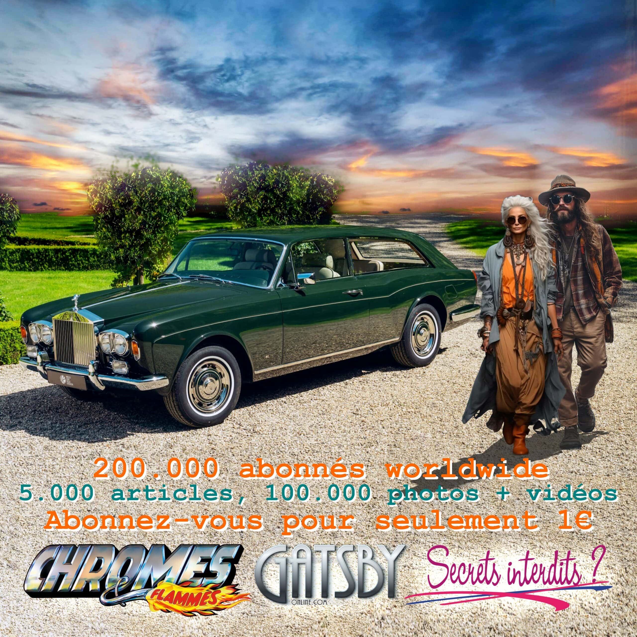 Rolls-Royce Corniche Shooting Brake & les Vieilles Belles Ravalées — Épisode 3 : Incrustation des MILF de la Tôle : Et là, surgissent les vieilles belles ravalées. Cadillac 1959, Buick Riviera, Plymouth Fury — toutes passées sous bistouri, repeintes, regarnies, prêtes à s’incruster dans le décor comme des amantes ressuscitées. Elles ne roulent plus, elles paradent. Elles ne consomment pas, elles séduisent. Chaque photo est une scène de crime esthétique… Rolls-Royce Corniche Shooting Brake & les Vieilles Belles Ravalées — Épisode 4 : Le Porte-Vélos Mystique : Le pare-chocs arrière s’ouvre comme une bouche de vérité. Deux vélos surgissent, lavables sur place, comme si la Rolls avait prévu le triathlon post-coït. C’est du génie ou de la folie. Ou les deux. Le réservoir a été déplacé, les sièges se replient électriquement, et l’ensemble respire l’obsession du détail. C’est du ravalement de haut vol, du tuning aristocratique.