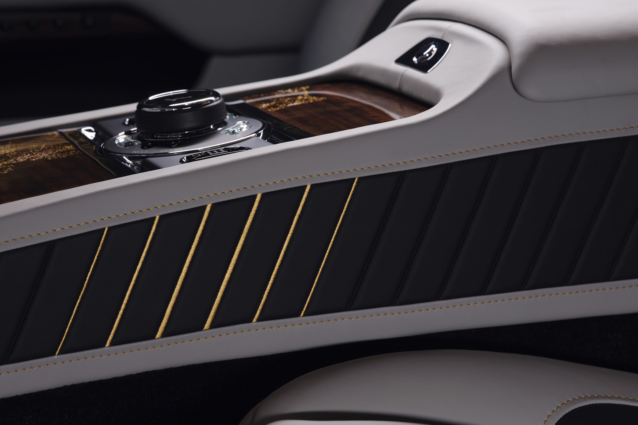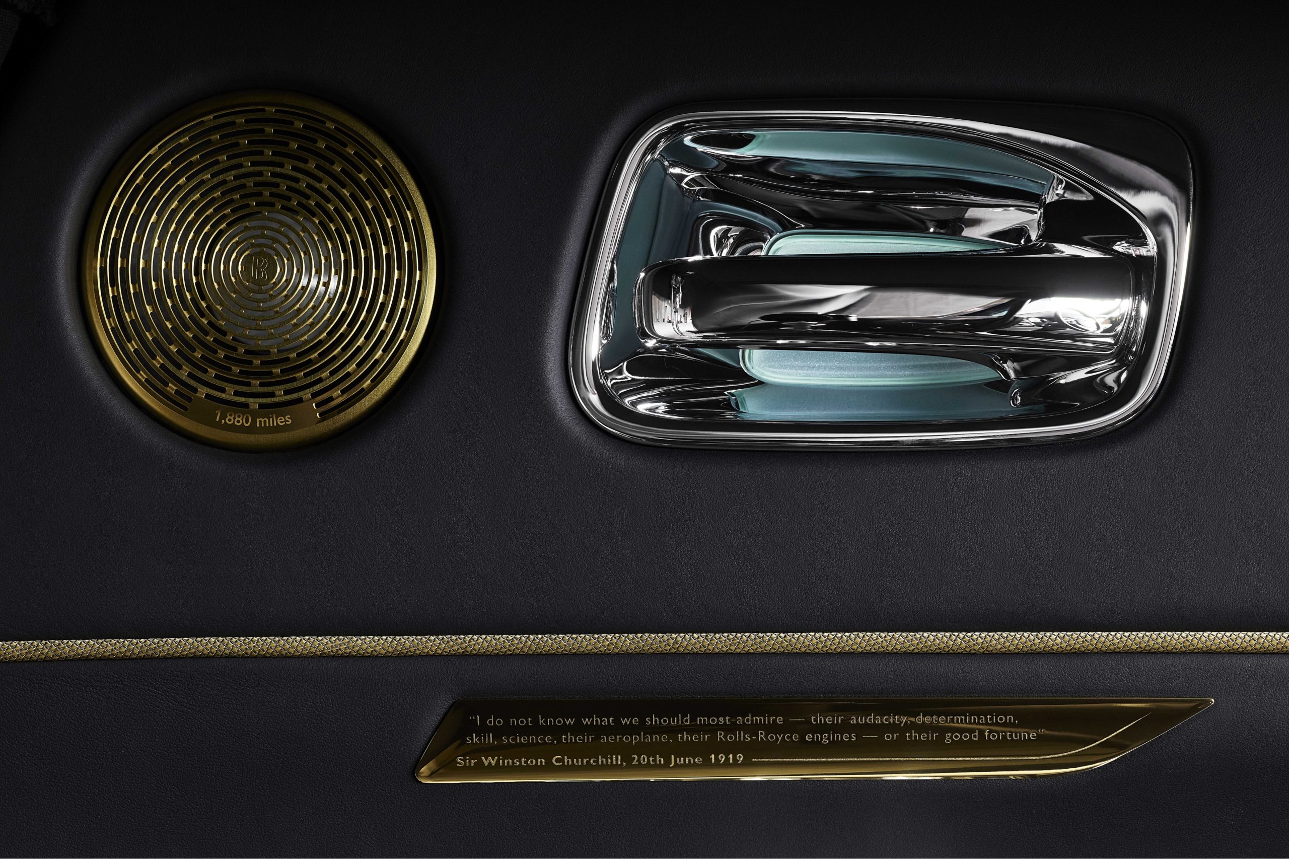 Les caches des haut-parleurs en laiton représentent la distance de vol estimée à 3.025 km et les monogrammes « RR » sont brodés à l’aide de fil de couleur en laiton sur les appuie-têtes.