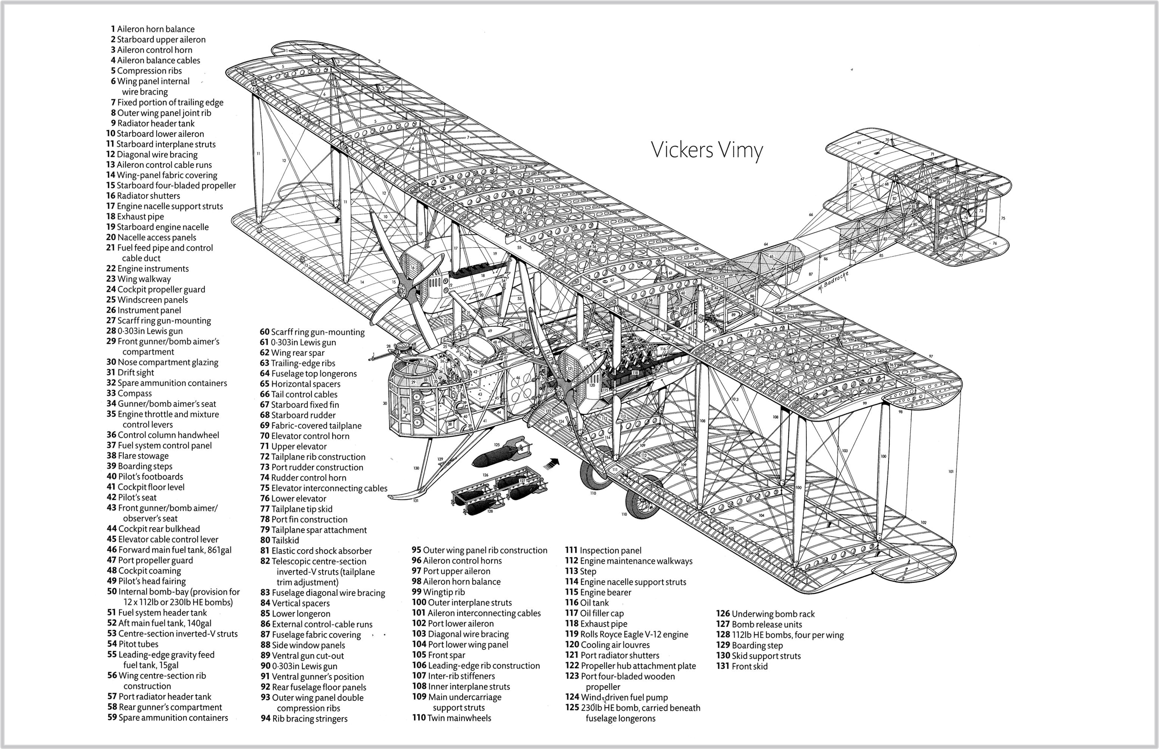 En dessous, les côtés matelassés incrustés de laiton du tunnel central sont un clin d’œil au Vickers Vimy à moteur V12.