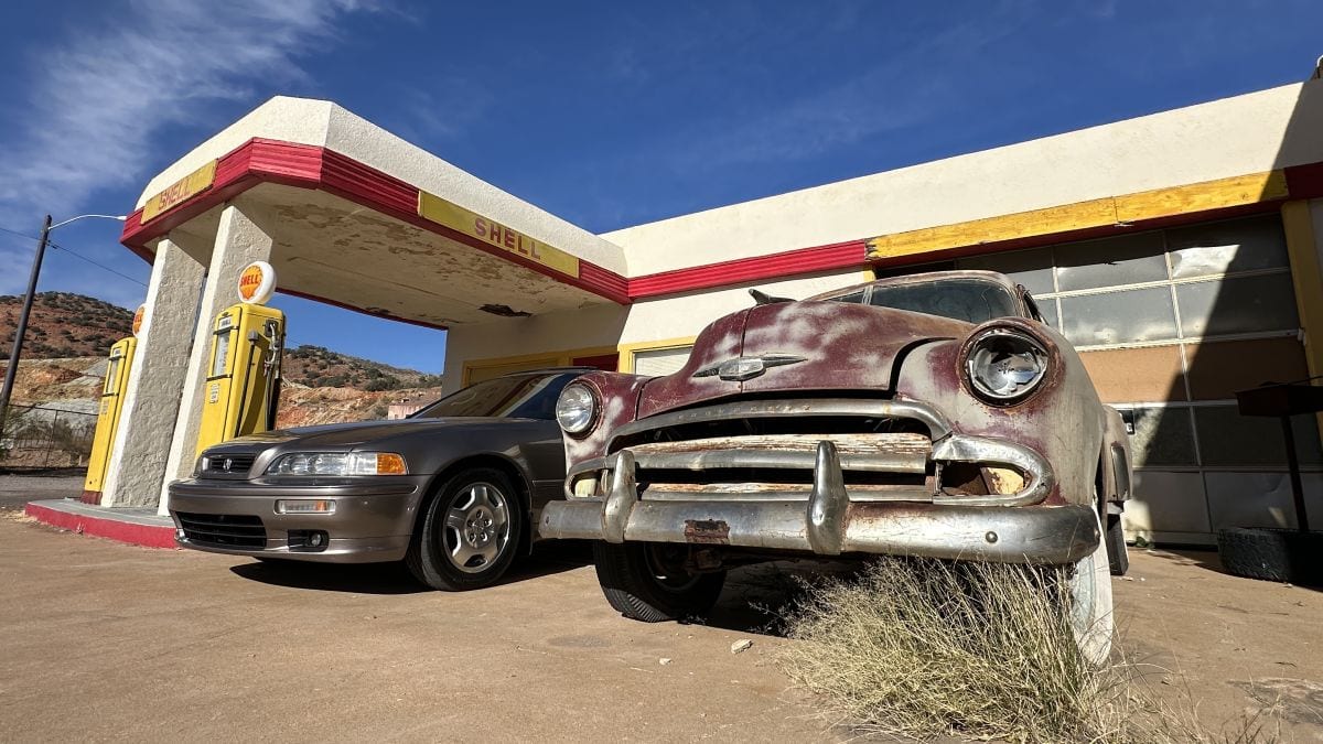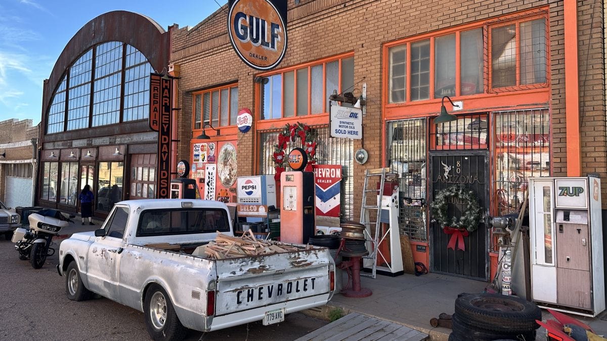 Avec ses 450 habitants, la bourgade de Seligman n’a même pas le statut de commune, mais c’est pourtant de là qu’est parti le vaste mouvement de renouveau qui a relancé dans le monde entier l’intérêt pour la Route 66… Dans ce coin de l’Arizona, les villages sont rares. Après Seligman, la minuscule bourgade d’Ash Fork, elle non plus ne s’est toujours pas remise de son contournement par l’Interstate 40. Mais la “DeSoto’s Beauty and Barber Shop” est toujours là ! Installée dans une ancienne station-service, cette boutique de barbier se distingue par sa DeSoto 1958 installée sur son toit qui s’est effondré…