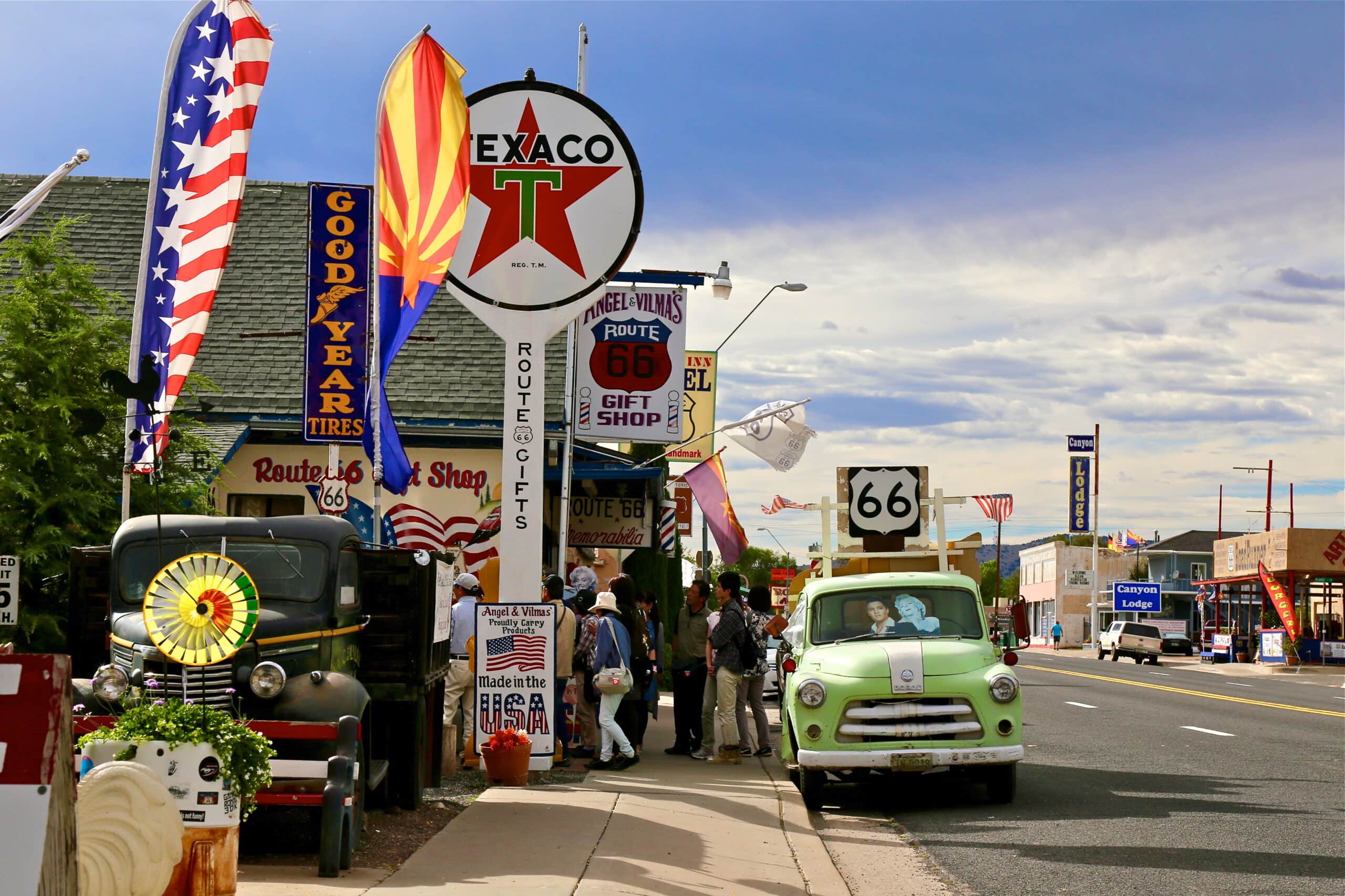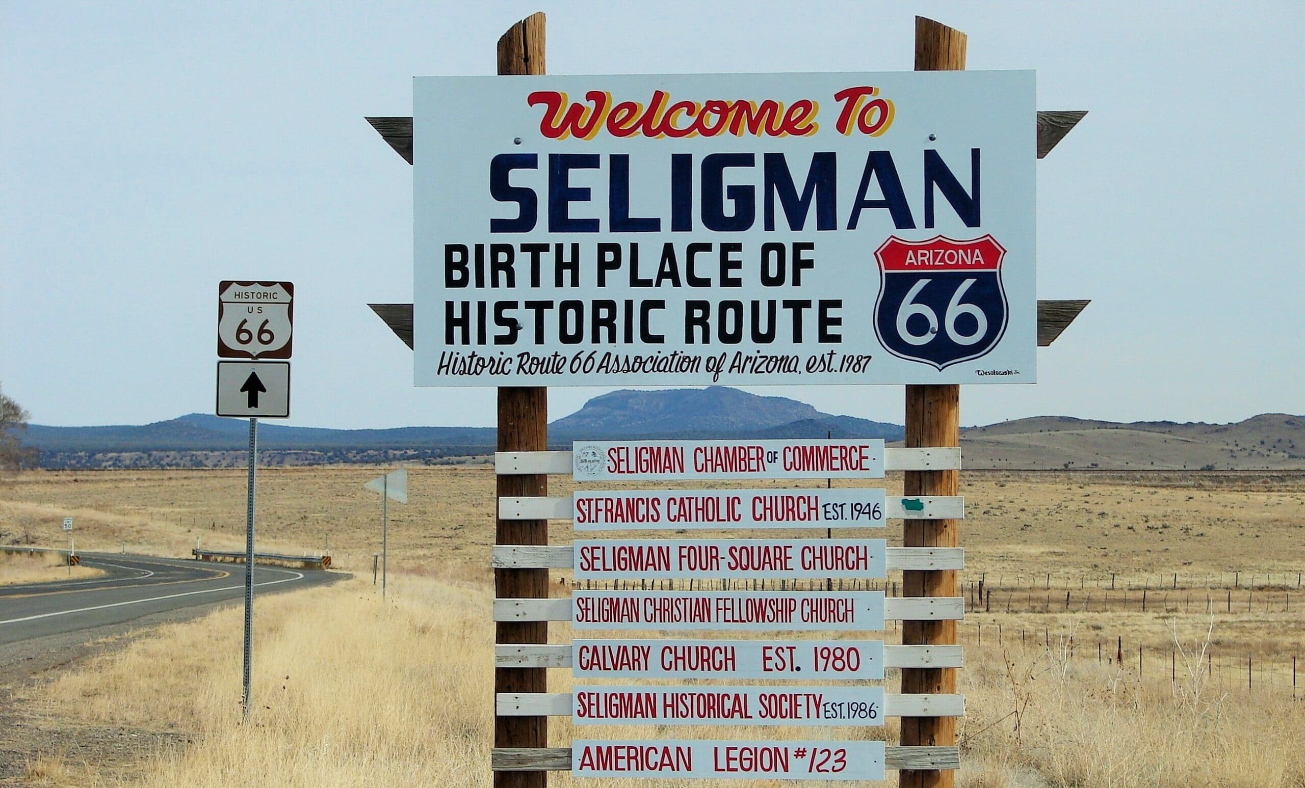 Si le visiteur pressé pourra faire abstraction d’un arrêt à “Ash Fork”, le pèlerinage à Seligman est en revanche obligatoire ! Ce petit village est en effet le berceau du renouveau de la Route 66 : c’est ici qu’a été créée la première association destinée à préserver la Route Mère, en 1987. Pourquoi là et pas ici ou là-bas ? Sans doute parce que toutes les villes entre Seligman et Topock, à la frontière californienne, sont identiques et ont beaucoup souffert d’être contournées par l’autoroute qui ne s’est pas embarrassée des villages et a préféré tirer tout droit à travers le no man’s land de ce coin de l’Arizona.