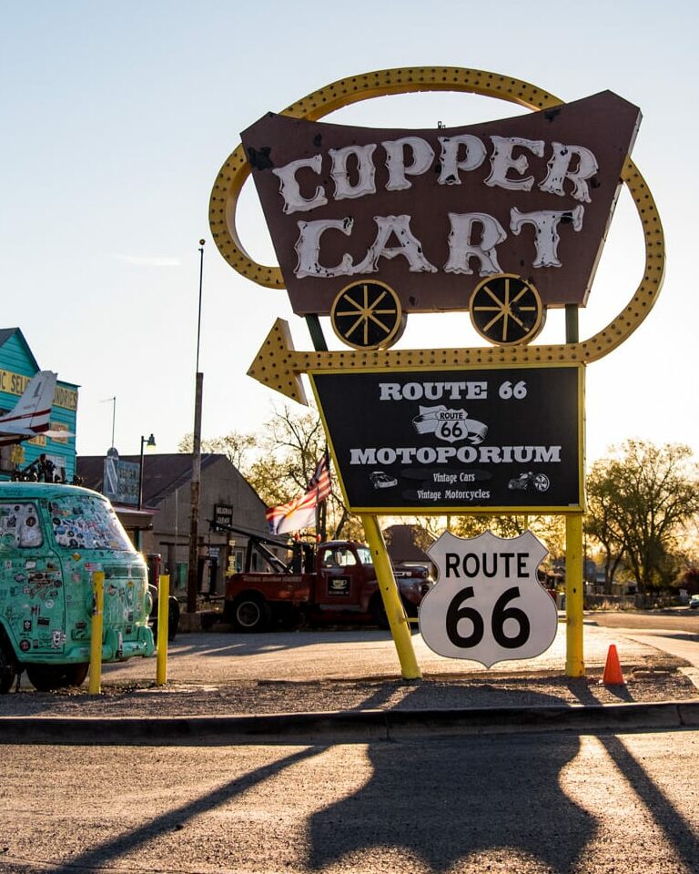 Et l’humour décalé de l’ancien propriétaire est toujours là : vous trouverez ainsi au menu du “Poulet mort”, des “Cheeseburgers avec fromage pourri” et des “Hamburgers sans jambon”… Vous l’aurez compris, à Seligman, les descendant paupérisés aiment bien rigoler ! Il y a quelque chose de charmant à visiter une ville fantôme qui embrasse l’histoire de l’automobile. En y repensant, ma visite à Seligman le long de la Route 66 a été l’un des moments forts de mon année. J’ai même osé passer une nuit au “Shady Dell RV Park”, avec une pute fantomatique…