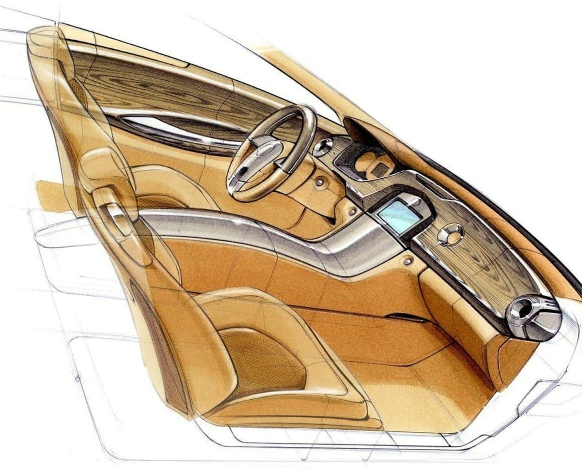 Un prototype exclusif pour commencer, ensuite une petite série pour les passionnés dévoués, avec en appui une limousine de cérémonie pour le président Poutine, considéré comme le nouveau Tzar, tel était l’avenir imaginé le plus radieux possible. L’essentiel fut la possibilité d’introduire des approches occidentales dans la production russe, ainsi que l’accès aux développements nationaux et au développement de matériaux et de technologies inaccessibles à l’Occident. Un échange/partenariat ! Après avoir acheté les droits sur la marque, l’équipe de “A: Level” a commencé à travailler. Le projet était axé sur la production du premier prototype, le développement de ses caractéristiques stylistiques et, surtout, l’idéologie de la marque Russo-Baltique. L’investissement est venu des mains, ou plutôt de la poche, de l’entrepreneur moscovite Viktor Taknov, un collectionneur passionné de voitures d’exception désireux de contribuer à la nouvelle grandeur créative de la Russie… À la suite des discussions, il a été décidé de développer cette vision d’un grand coupé à moteur avant à quatre places. Il a fallu près de deux ans pour développer le style via divers croquis et la mise en page à grande échelle.
