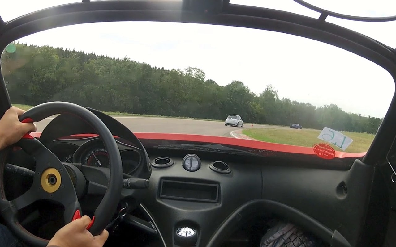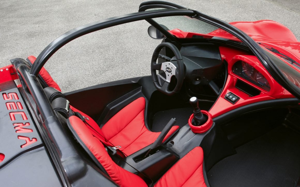 Prendre le volant d’une Secma F16 Turbo est un délire sadomasochiste, l’engin est inconfortable, rien n’y est apaisant, ni pratique ni rationnel… le plaisir de conduire est basiquement relationnel dans ce qu’il a de plus simpliste… comme piloter un motoculteur de course de presque 40.000 euros (quand-même) !