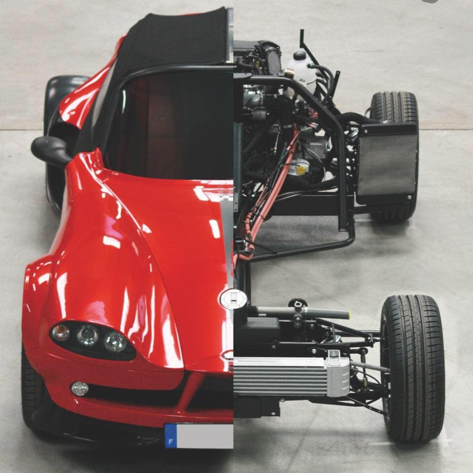 La F16 Turbo est entièrement produite par la Société d’études et de construction de mécanique automobile (Secma), installée à Aniche (Nord) depuis une quarantaine d’années… son fondateur, Daniel Renard et son équipe, se sont lancés dans le projet d’un mini Roadster de 3 mètres et 650kg en même temps que les tours du WTC s’écroulaient à New-York…