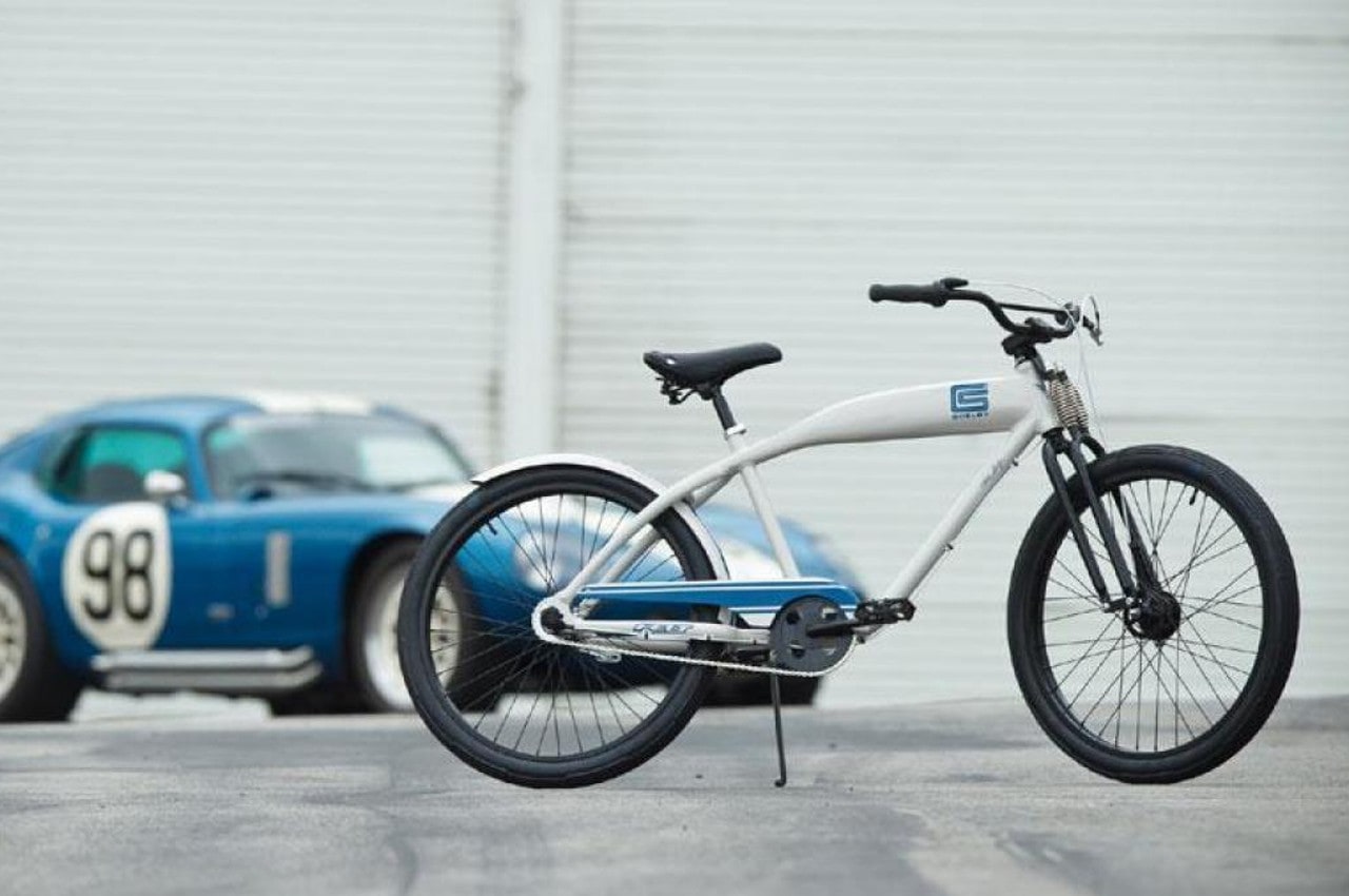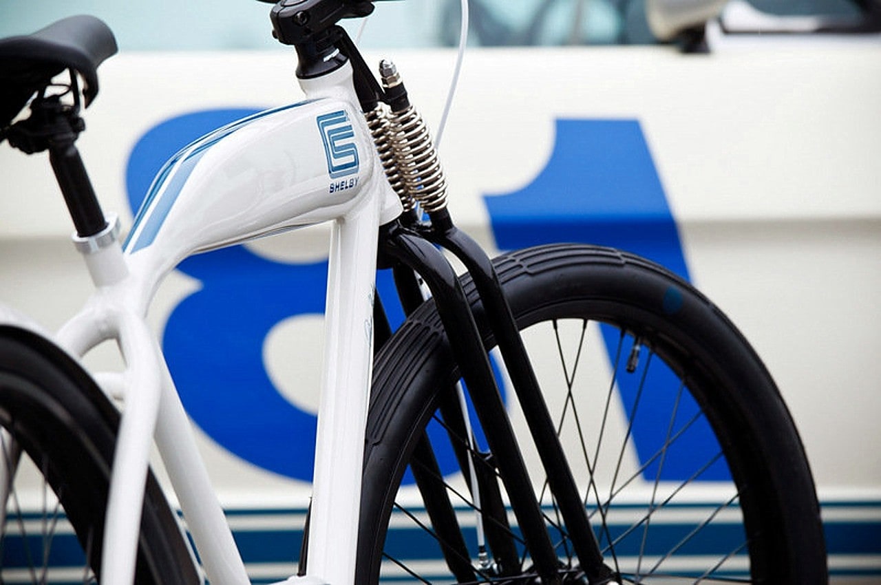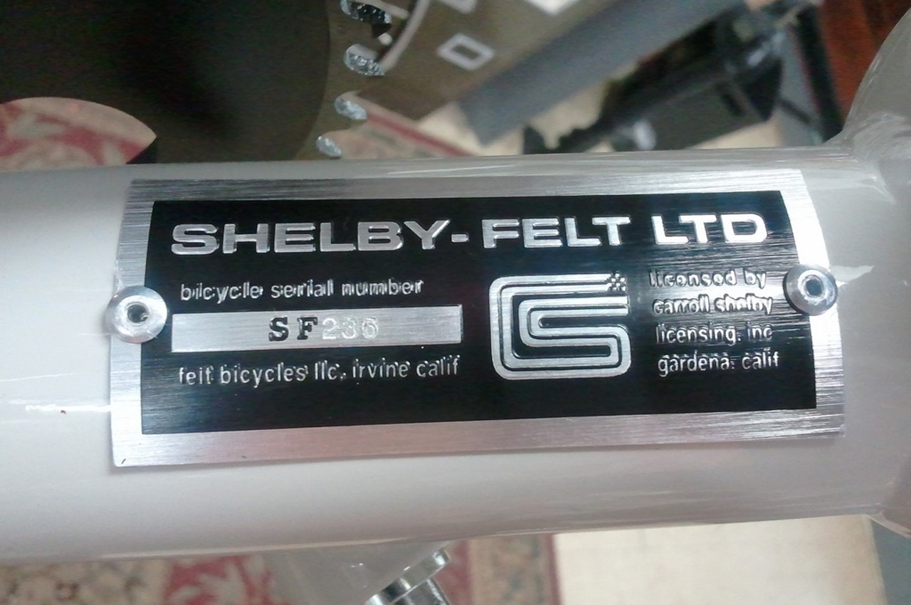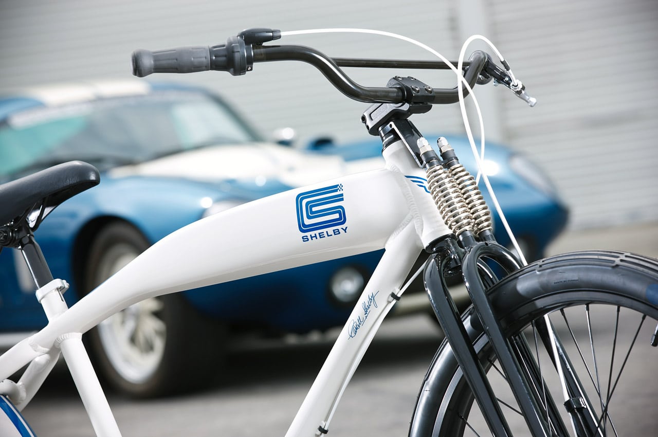 La marque de vélos californienne Felt s’était associée en 2011 avec Carroll Shelby pour sortir un cruiser à l’effigie du légendaire pilote et préparateur automobile…En bleu et blanc, comme la mythique Ford Mustang Shelby GT 350 de 1965, ce cruiser se la jouait rétro, mais adoptait un moyeu 3 vitesses, des jantes extra larges, une fourche Springer, ainsi qu’une plaque d’identification rivetée sur le cadre… Une Shelby sans moteur, ça change des légendaires bolides aux blocs surdimensionnés de la marque dont les beaufs n’osent imaginer l’appétit glouton en énergie fossile et ses rejets CO2 associés ! 300 modèles uniquement, numérotés, ont été fabriqués et vendus au prix public de 799 Euros… Un an plus tard, Carroll Shelby, la légende automobile…, est décédé le jeudi 10 mai 2012, il avait 89 ans. L’affaire du vélo Felt a été enterrée en même temps que lui…