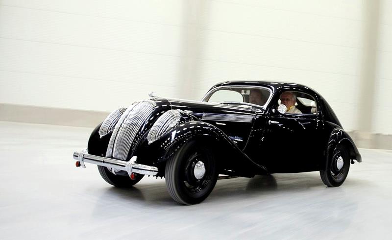 D’accord…, mais là aussi à l’intérieur du hangar…, un coupé de toute beauté, très aérodynamique, sorte de Bugatti en format réduit caractérisé par sa crête arrière, dérivé de la berline Popular de l’époque, Skoda n’en aurait fabriqué (entre 1936 et 1937), que 72 exemplaires…, dont très peu existent encore aujourd’hui…, mais celui restauré par Skoda vaut de détour !