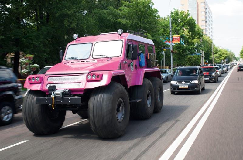 L’engin, équipé de pneus surdimensionné à basse pression, à une vitesse maximum de 80 km/h… et va naturellement partout sans endommager les parterres de fleurs… et même les gens s’il venait à l’idée du conducteur de tenter d’écraser quelqu’un…