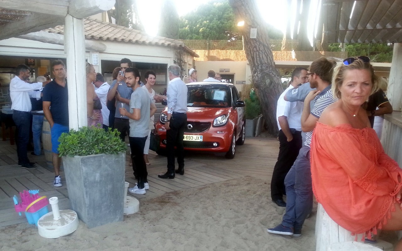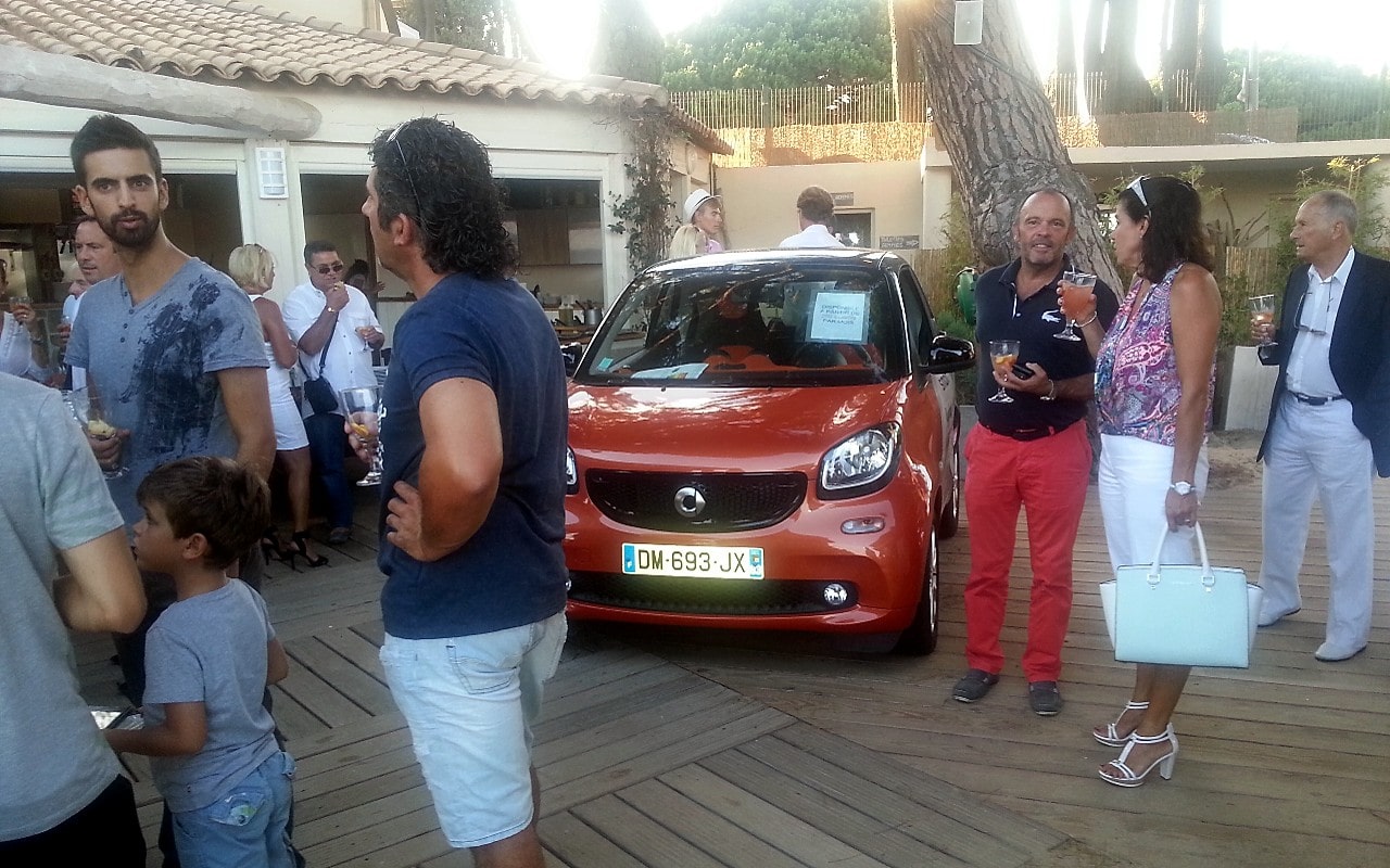 Je m’y suis rendu à l’appui d’une lettre d’amour : “Après une dure journée de travail ou pour prolonger une belle journée ensoleillée, votre concession INTERNATIONAL GARAGE et moi-même avons le plaisir de vous inviter à un apéro dinatoire branché et convivial ce mercredi 29 juillet. Venez avec votre conjoint, votre ami(e), ou votre collègue de travail, passer un moment agréable à partir de 19h30 à la plage “Club-44” située 125 Avenue du Croiseur léger “Le Malin”. Comptant sur votre honorable présence, je vous souhaite une belle journée”… Les photos parlent d’elles-mêmes, ce fut une soirée “hyper-sympa” avec une grande quantité de Smartophiles…